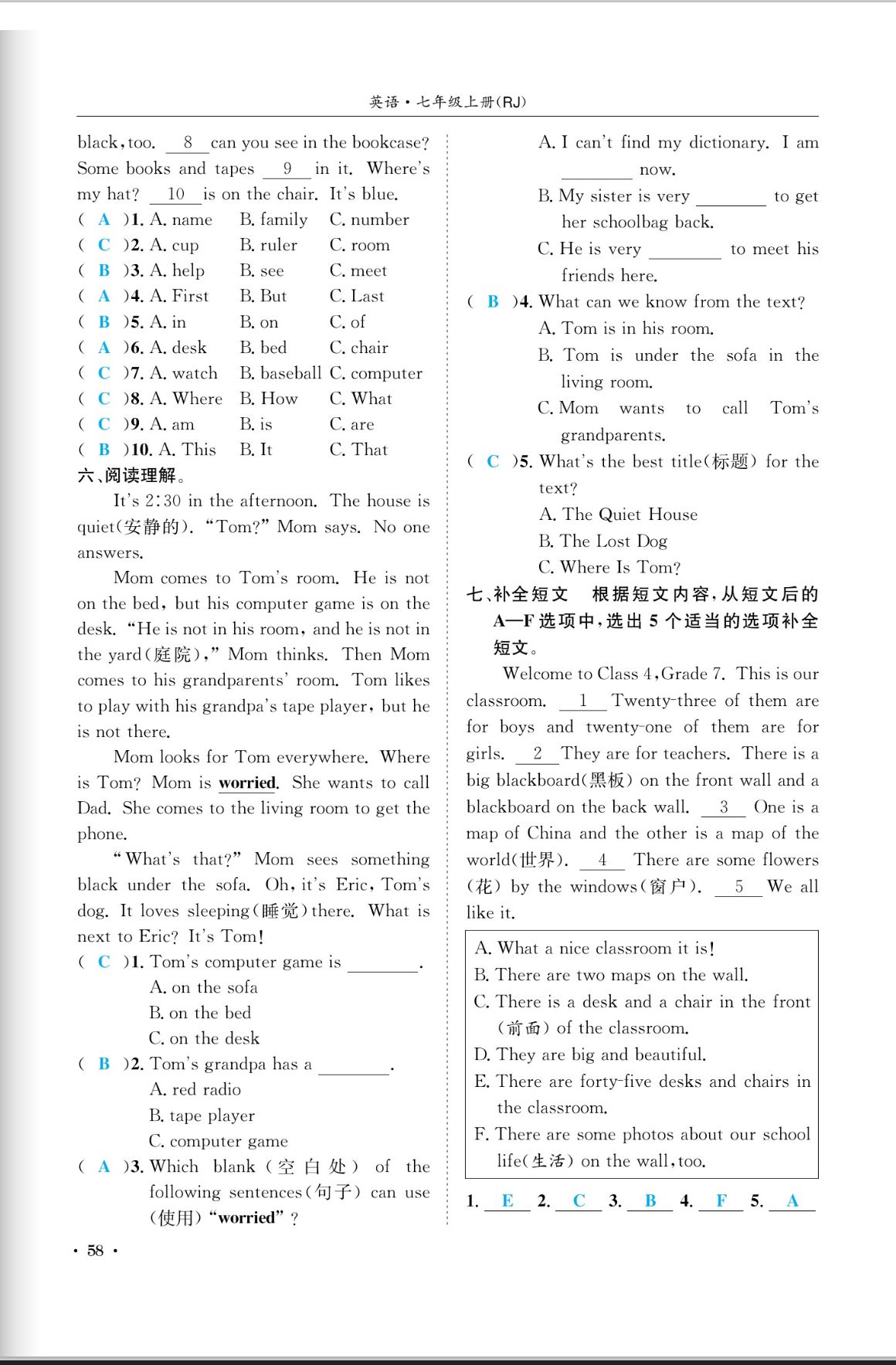 注:目前有些书本章节名称可能整理的还不是很完善,但都是按照顺序排列的,请同学们按照顺序仔细查找。练习册 2023年蓉城学霸七年级英语上册人教版成都专版 答案主要是用来给同学们做完题方便对答案用的,请勿直接抄袭。
