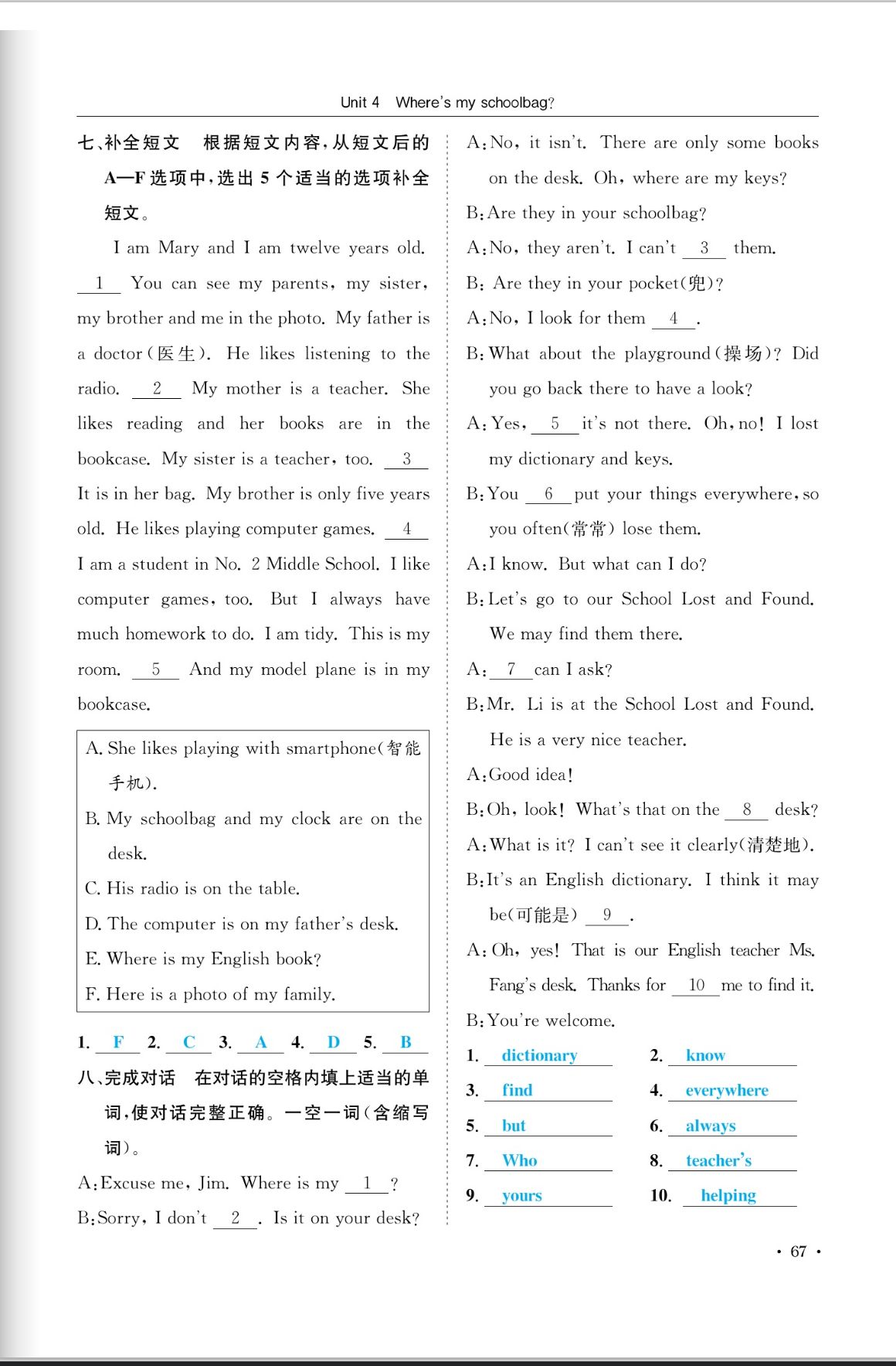 注:目前有些书本章节名称可能整理的还不是很完善,但都是按照顺序排列的,请同学们按照顺序仔细查找。练习册 2023年蓉城学霸七年级英语上册人教版成都专版 答案主要是用来给同学们做完题方便对答案用的,请勿直接抄袭。