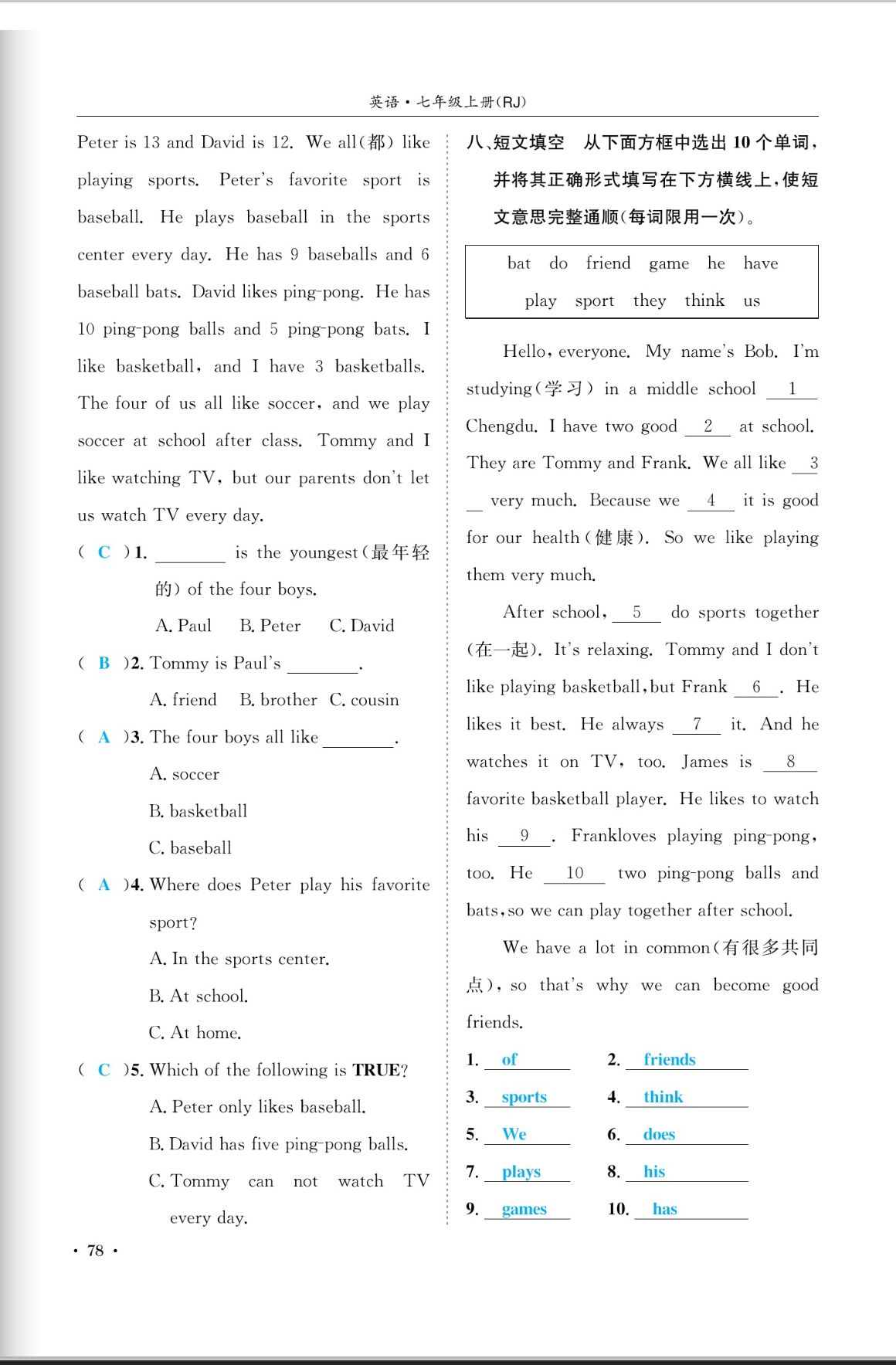 注:目前有些书本章节名称可能整理的还不是很完善,但都是按照顺序排列的,请同学们按照顺序仔细查找。练习册 2023年蓉城学霸七年级英语上册人教版成都专版 答案主要是用来给同学们做完题方便对答案用的,请勿直接抄袭。