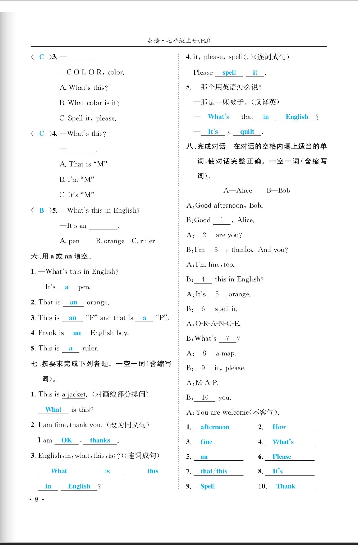 注:目前有些书本章节名称可能整理的还不是很完善,但都是按照顺序排列的,请同学们按照顺序仔细查找。练习册 2023年蓉城学霸七年级英语上册人教版成都专版 答案主要是用来给同学们做完题方便对答案用的,请勿直接抄袭。