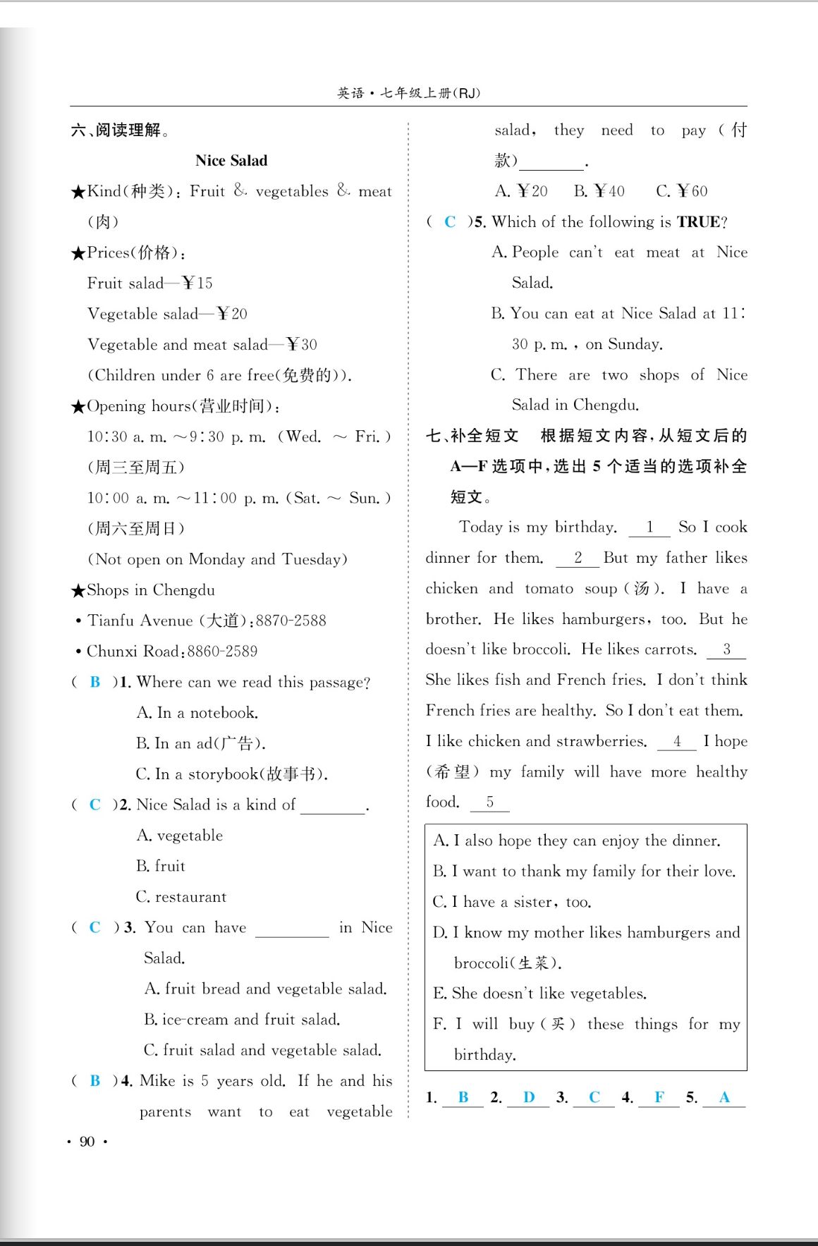 注:目前有些书本章节名称可能整理的还不是很完善,但都是按照顺序排列的,请同学们按照顺序仔细查找。练习册 2023年蓉城学霸七年级英语上册人教版成都专版 答案主要是用来给同学们做完题方便对答案用的,请勿直接抄袭。
