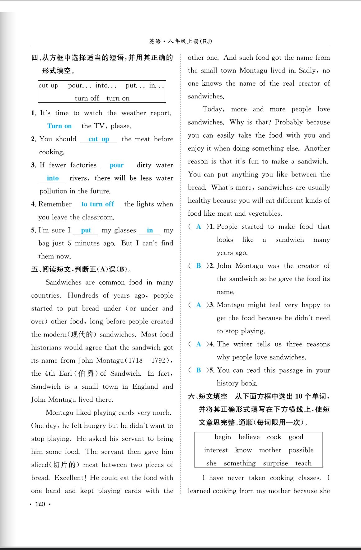 注:目前有些书本章节名称可能整理的还不是很完善,但都是按照顺序排列的,请同学们按照顺序仔细查找。练习册 2023年蓉城学霸八年级英语上册人教版成都专版 答案主要是用来给同学们做完题方便对答案用的,请勿直接抄袭。