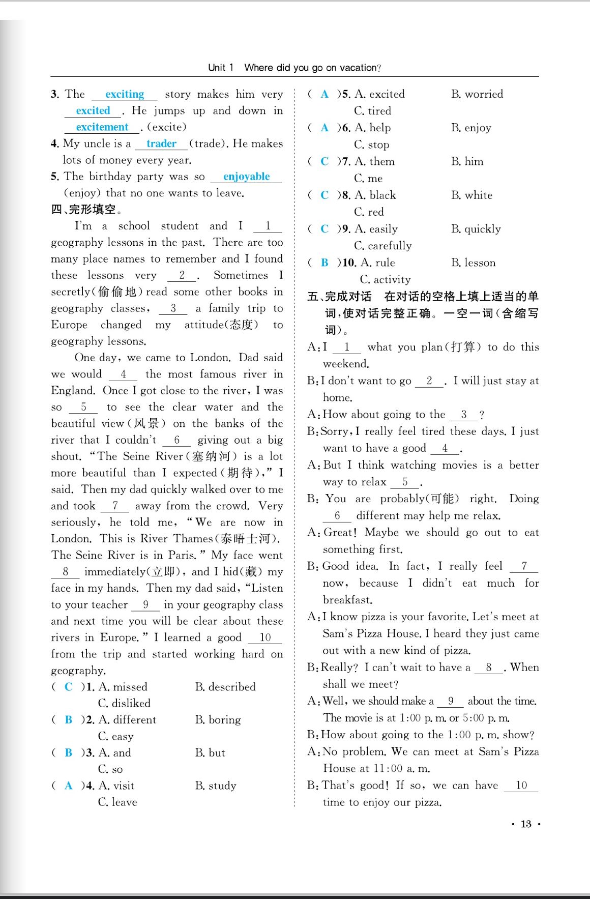 注:目前有些书本章节名称可能整理的还不是很完善,但都是按照顺序排列的,请同学们按照顺序仔细查找。练习册 2023年蓉城学霸八年级英语上册人教版成都专版 答案主要是用来给同学们做完题方便对答案用的,请勿直接抄袭。