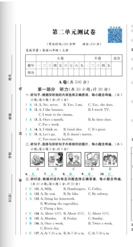 注:目前有些书本章节名称可能整理的还不是很完善,但都是按照顺序排列的,请同学们按照顺序仔细查找。练习册 2023年蓉城学霸八年级英语上册人教版成都专版 答案主要是用来给同学们做完题方便对答案用的,请勿直接抄袭。