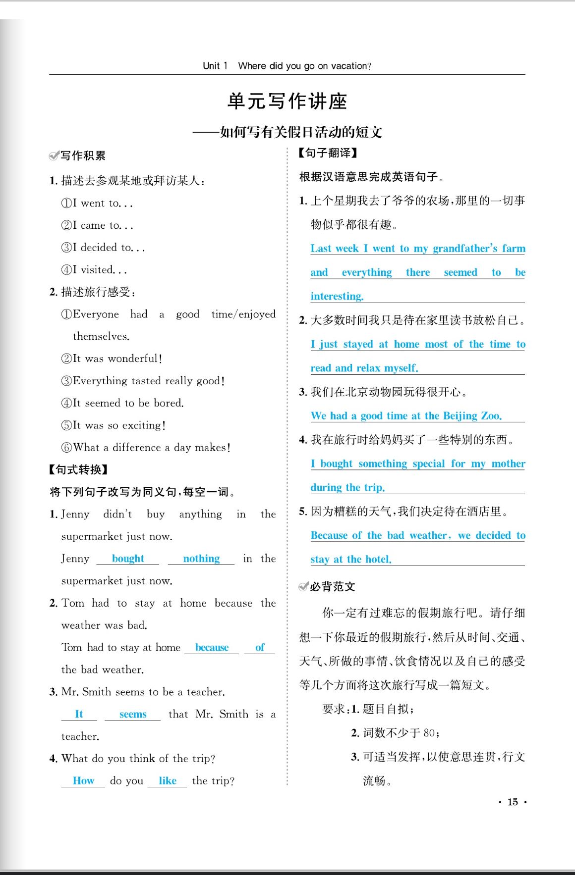 注:目前有些书本章节名称可能整理的还不是很完善,但都是按照顺序排列的,请同学们按照顺序仔细查找。练习册 2023年蓉城学霸八年级英语上册人教版成都专版 答案主要是用来给同学们做完题方便对答案用的,请勿直接抄袭。