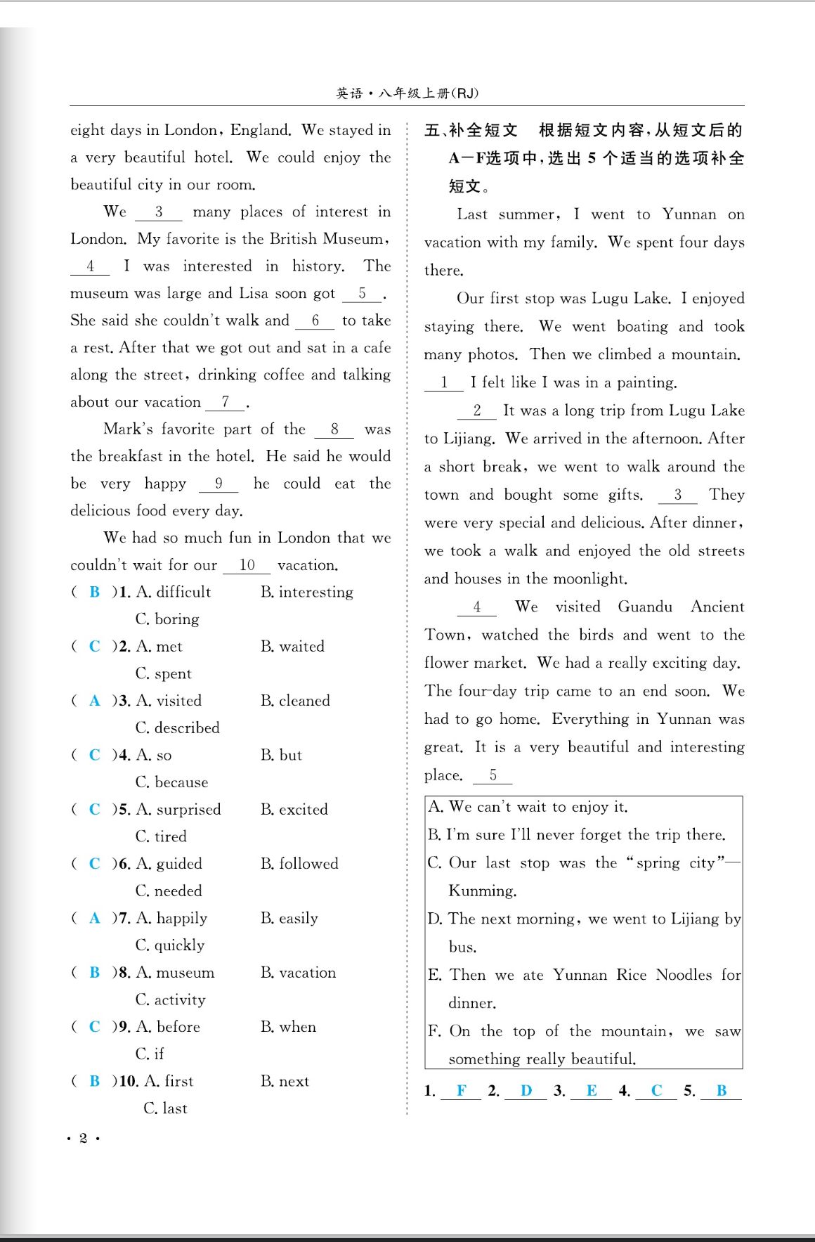 注:目前有些书本章节名称可能整理的还不是很完善,但都是按照顺序排列的,请同学们按照顺序仔细查找。练习册 2023年蓉城学霸八年级英语上册人教版成都专版 答案主要是用来给同学们做完题方便对答案用的,请勿直接抄袭。