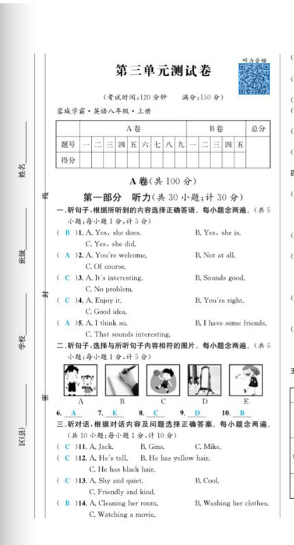 注:目前有些书本章节名称可能整理的还不是很完善,但都是按照顺序排列的,请同学们按照顺序仔细查找。练习册 2023年蓉城学霸八年级英语上册人教版成都专版 答案主要是用来给同学们做完题方便对答案用的,请勿直接抄袭。