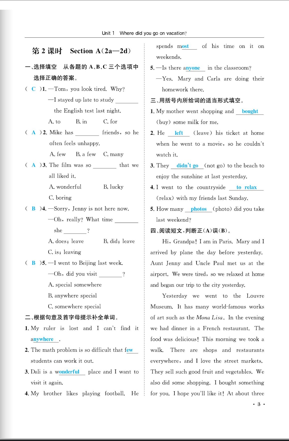 注:目前有些书本章节名称可能整理的还不是很完善,但都是按照顺序排列的,请同学们按照顺序仔细查找。练习册 2023年蓉城学霸八年级英语上册人教版成都专版 答案主要是用来给同学们做完题方便对答案用的,请勿直接抄袭。