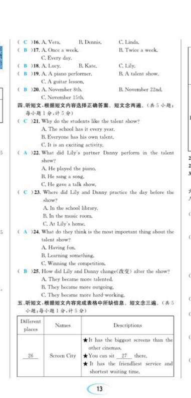 注:目前有些书本章节名称可能整理的还不是很完善,但都是按照顺序排列的,请同学们按照顺序仔细查找。练习册 2023年蓉城学霸八年级英语上册人教版成都专版 答案主要是用来给同学们做完题方便对答案用的,请勿直接抄袭。