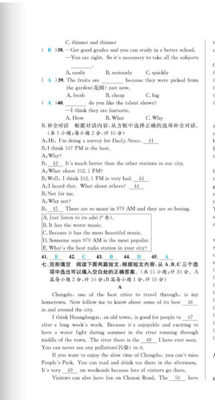 注:目前有些书本章节名称可能整理的还不是很完善,但都是按照顺序排列的,请同学们按照顺序仔细查找。练习册 2023年蓉城学霸八年级英语上册人教版成都专版 答案主要是用来给同学们做完题方便对答案用的,请勿直接抄袭。