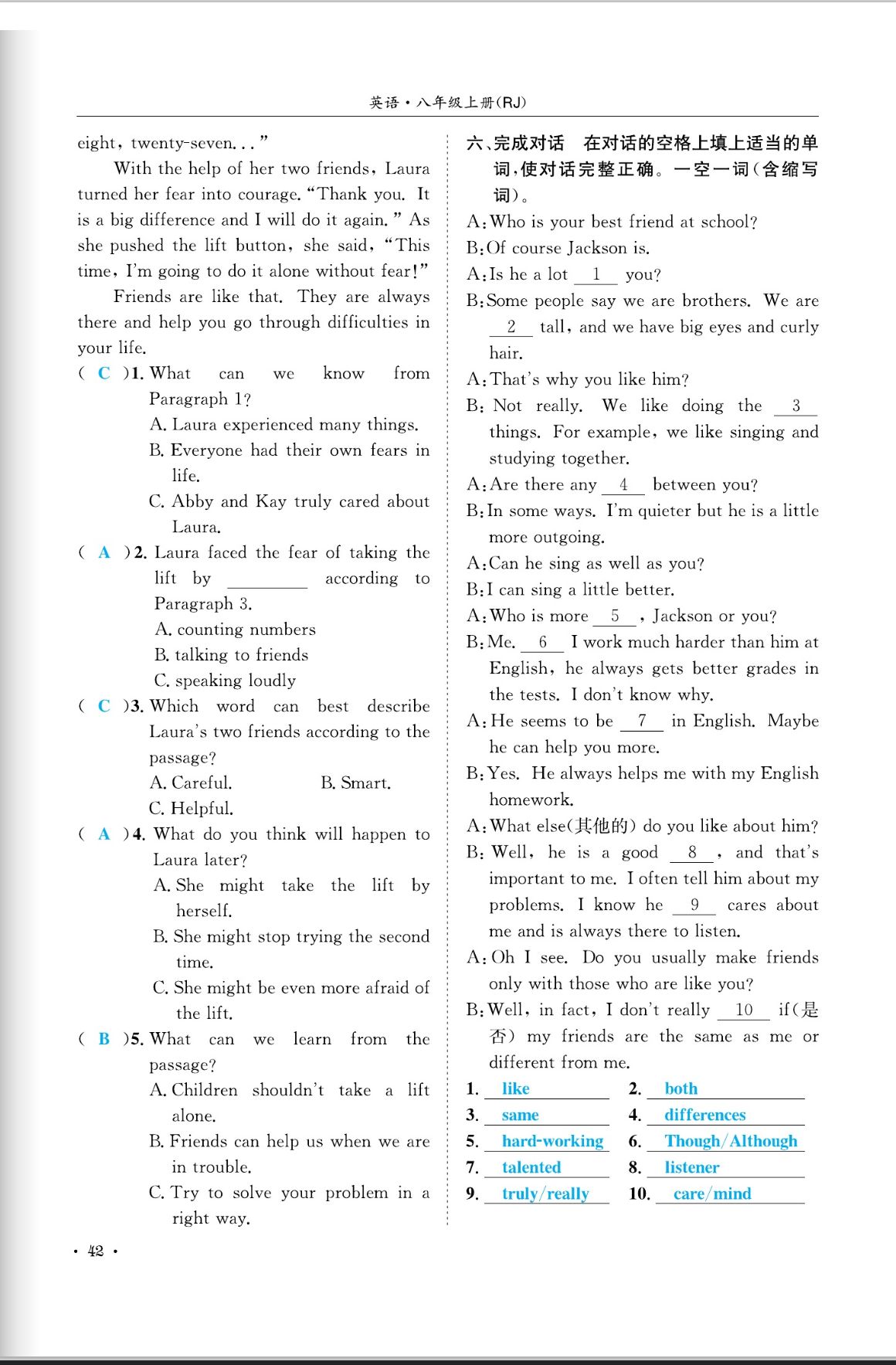 注:目前有些书本章节名称可能整理的还不是很完善,但都是按照顺序排列的,请同学们按照顺序仔细查找。练习册 2023年蓉城学霸八年级英语上册人教版成都专版 答案主要是用来给同学们做完题方便对答案用的,请勿直接抄袭。