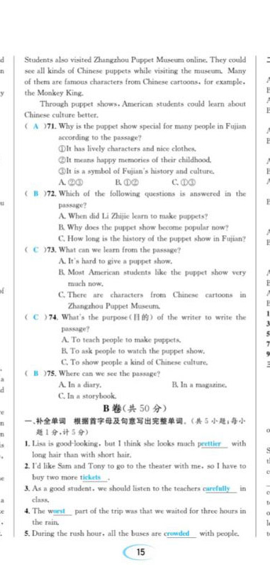 注:目前有些书本章节名称可能整理的还不是很完善,但都是按照顺序排列的,请同学们按照顺序仔细查找。练习册 2023年蓉城学霸八年级英语上册人教版成都专版 答案主要是用来给同学们做完题方便对答案用的,请勿直接抄袭。