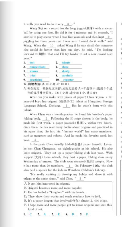 注:目前有些书本章节名称可能整理的还不是很完善,但都是按照顺序排列的,请同学们按照顺序仔细查找。练习册 2023年蓉城学霸八年级英语上册人教版成都专版 答案主要是用来给同学们做完题方便对答案用的,请勿直接抄袭。