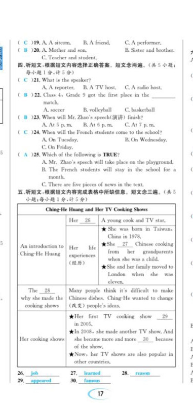 注:目前有些书本章节名称可能整理的还不是很完善,但都是按照顺序排列的,请同学们按照顺序仔细查找。练习册 2023年蓉城学霸八年级英语上册人教版成都专版 答案主要是用来给同学们做完题方便对答案用的,请勿直接抄袭。