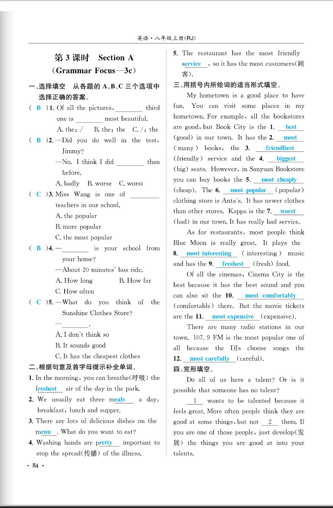 注:目前有些书本章节名称可能整理的还不是很完善,但都是按照顺序排列的,请同学们按照顺序仔细查找。练习册 2023年蓉城学霸八年级英语上册人教版成都专版 答案主要是用来给同学们做完题方便对答案用的,请勿直接抄袭。