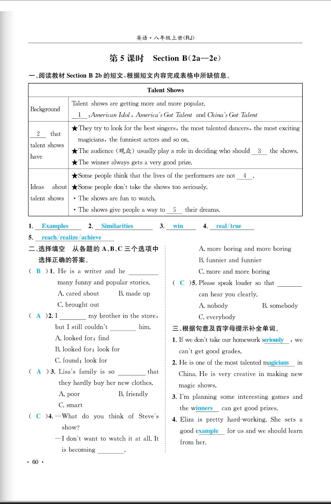 注:目前有些书本章节名称可能整理的还不是很完善,但都是按照顺序排列的,请同学们按照顺序仔细查找。练习册 2023年蓉城学霸八年级英语上册人教版成都专版 答案主要是用来给同学们做完题方便对答案用的,请勿直接抄袭。