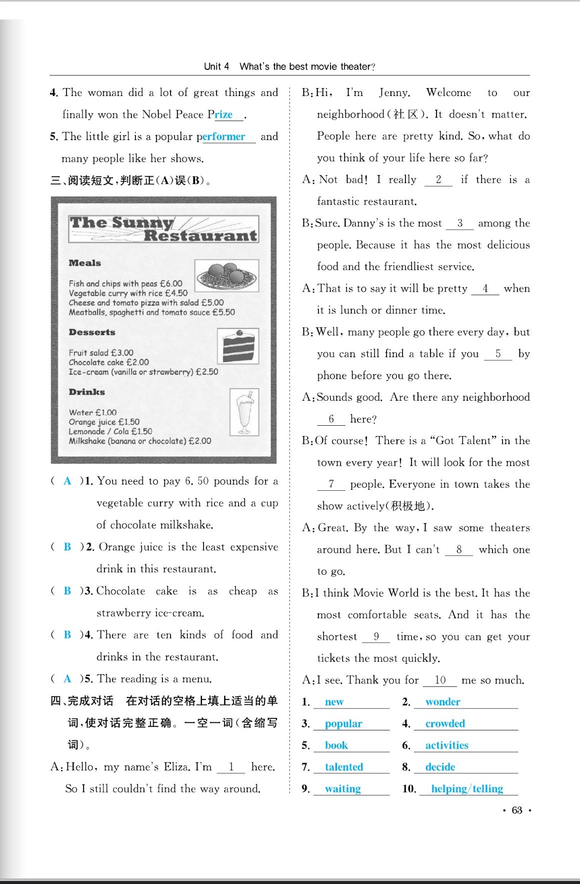 注:目前有些书本章节名称可能整理的还不是很完善,但都是按照顺序排列的,请同学们按照顺序仔细查找。练习册 2023年蓉城学霸八年级英语上册人教版成都专版 答案主要是用来给同学们做完题方便对答案用的,请勿直接抄袭。