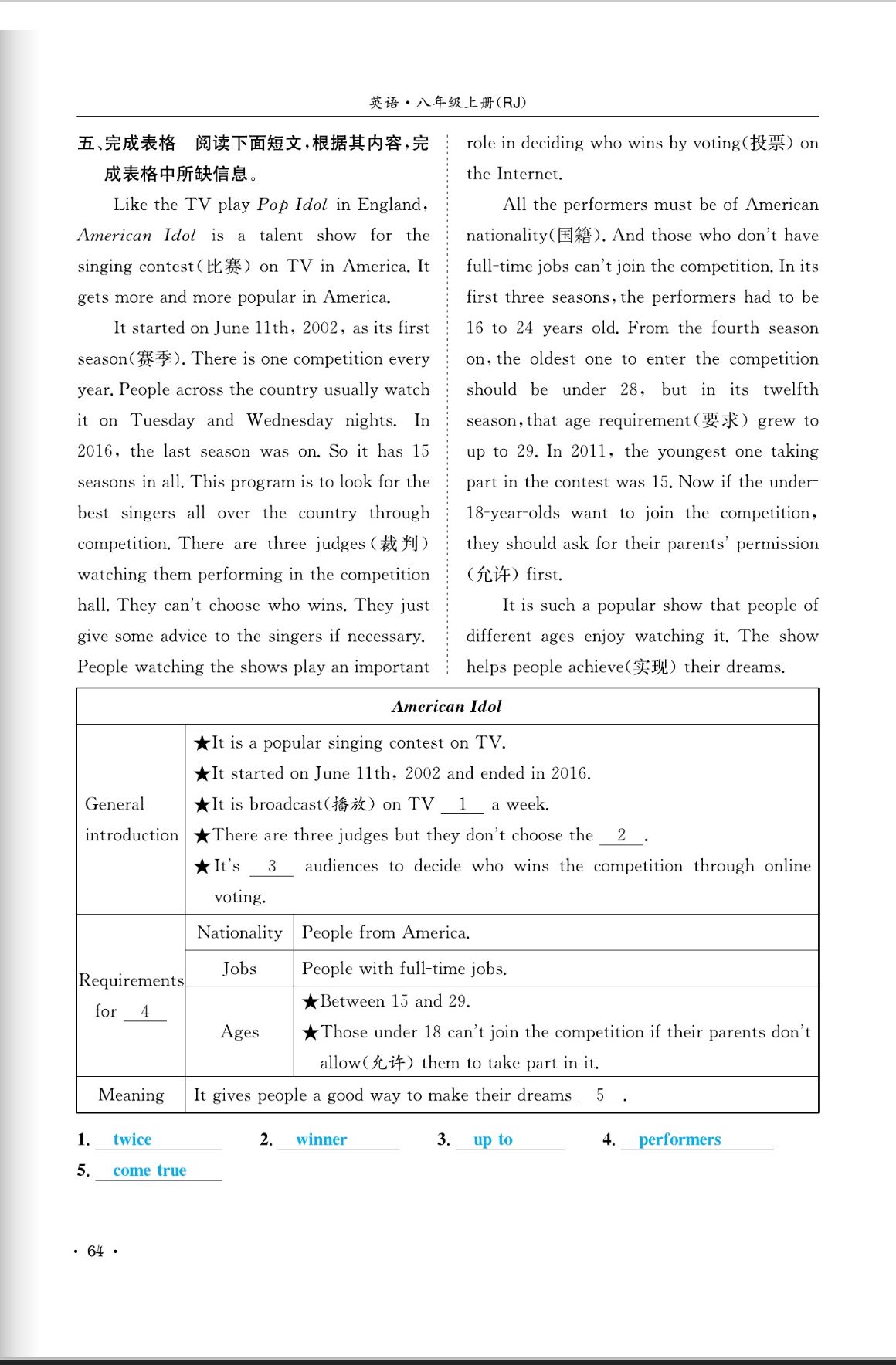 注:目前有些书本章节名称可能整理的还不是很完善,但都是按照顺序排列的,请同学们按照顺序仔细查找。练习册 2023年蓉城学霸八年级英语上册人教版成都专版 答案主要是用来给同学们做完题方便对答案用的,请勿直接抄袭。
