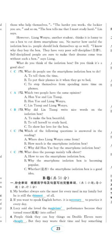 注:目前有些书本章节名称可能整理的还不是很完善,但都是按照顺序排列的,请同学们按照顺序仔细查找。练习册 2023年蓉城学霸八年级英语上册人教版成都专版 答案主要是用来给同学们做完题方便对答案用的,请勿直接抄袭。