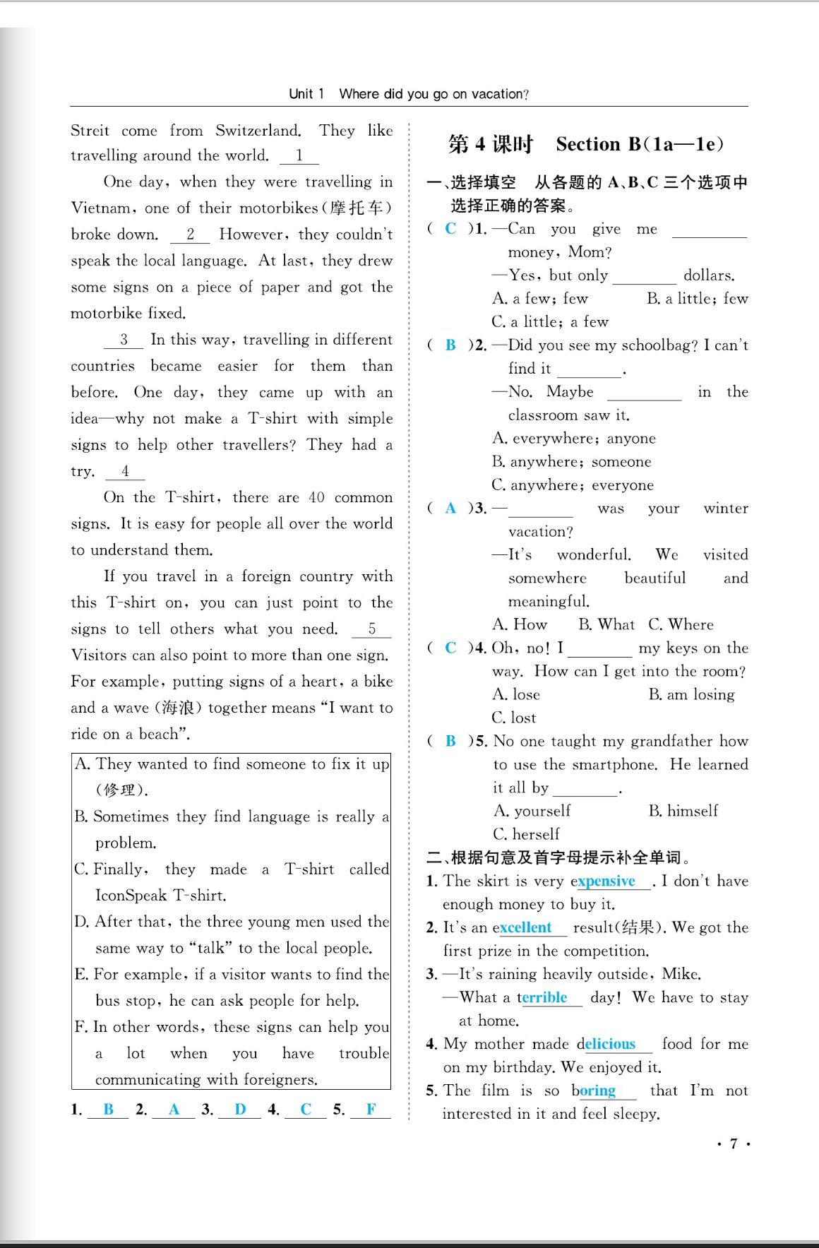 注:目前有些书本章节名称可能整理的还不是很完善,但都是按照顺序排列的,请同学们按照顺序仔细查找。练习册 2023年蓉城学霸八年级英语上册人教版成都专版 答案主要是用来给同学们做完题方便对答案用的,请勿直接抄袭。