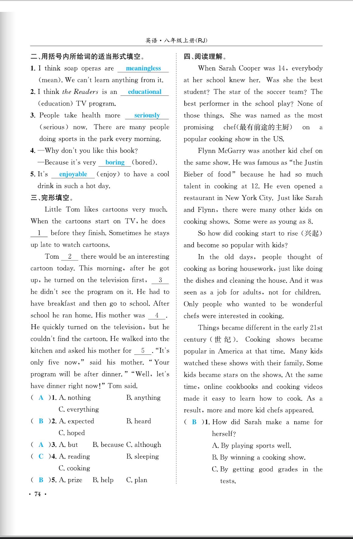注:目前有些书本章节名称可能整理的还不是很完善,但都是按照顺序排列的,请同学们按照顺序仔细查找。练习册 2023年蓉城学霸八年级英语上册人教版成都专版 答案主要是用来给同学们做完题方便对答案用的,请勿直接抄袭。