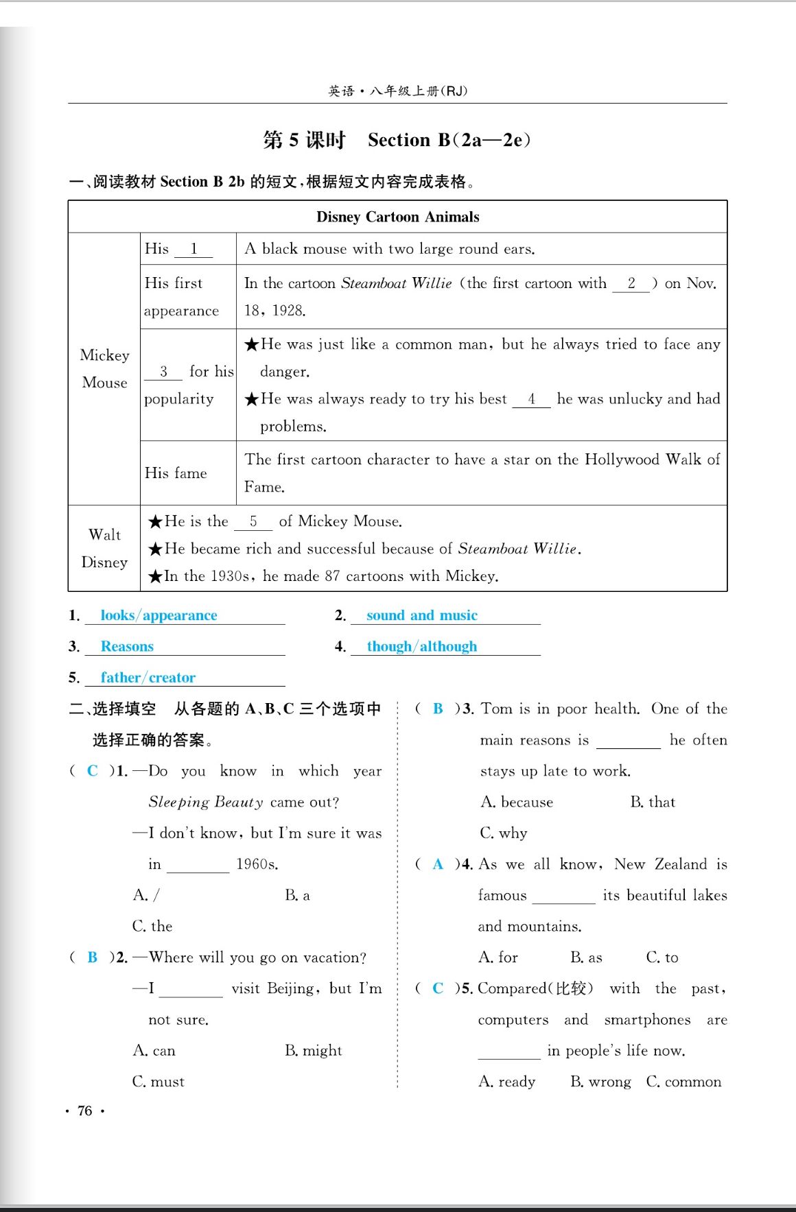 注:目前有些书本章节名称可能整理的还不是很完善,但都是按照顺序排列的,请同学们按照顺序仔细查找。练习册 2023年蓉城学霸八年级英语上册人教版成都专版 答案主要是用来给同学们做完题方便对答案用的,请勿直接抄袭。