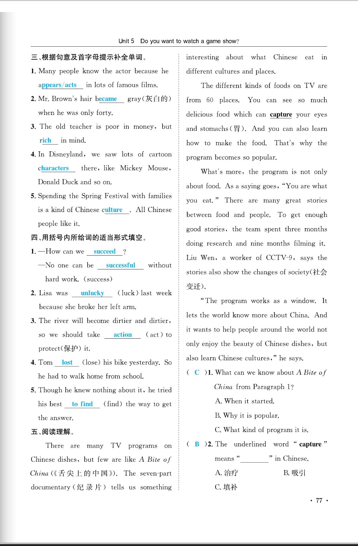 注:目前有些书本章节名称可能整理的还不是很完善,但都是按照顺序排列的,请同学们按照顺序仔细查找。练习册 2023年蓉城学霸八年级英语上册人教版成都专版 答案主要是用来给同学们做完题方便对答案用的,请勿直接抄袭。