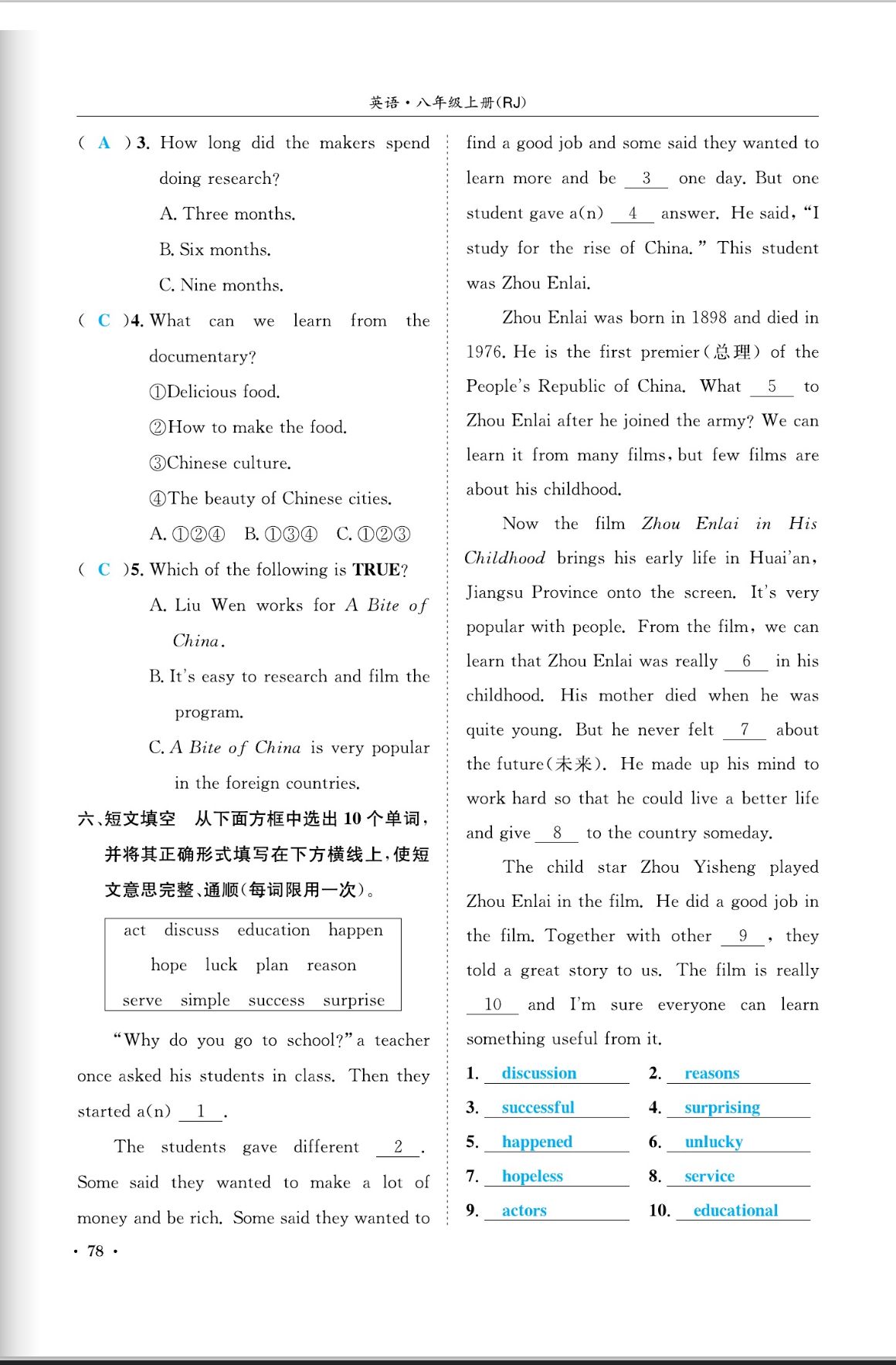 注:目前有些书本章节名称可能整理的还不是很完善,但都是按照顺序排列的,请同学们按照顺序仔细查找。练习册 2023年蓉城学霸八年级英语上册人教版成都专版 答案主要是用来给同学们做完题方便对答案用的,请勿直接抄袭。