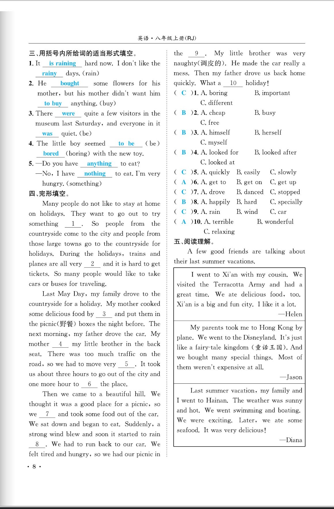注:目前有些书本章节名称可能整理的还不是很完善,但都是按照顺序排列的,请同学们按照顺序仔细查找。练习册 2023年蓉城学霸八年级英语上册人教版成都专版 答案主要是用来给同学们做完题方便对答案用的,请勿直接抄袭。