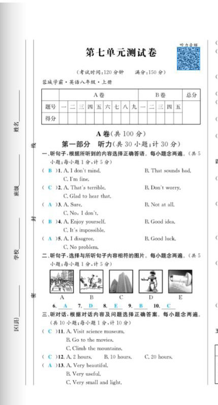 注:目前有些书本章节名称可能整理的还不是很完善,但都是按照顺序排列的,请同学们按照顺序仔细查找。练习册 2023年蓉城学霸八年级英语上册人教版成都专版 答案主要是用来给同学们做完题方便对答案用的,请勿直接抄袭。