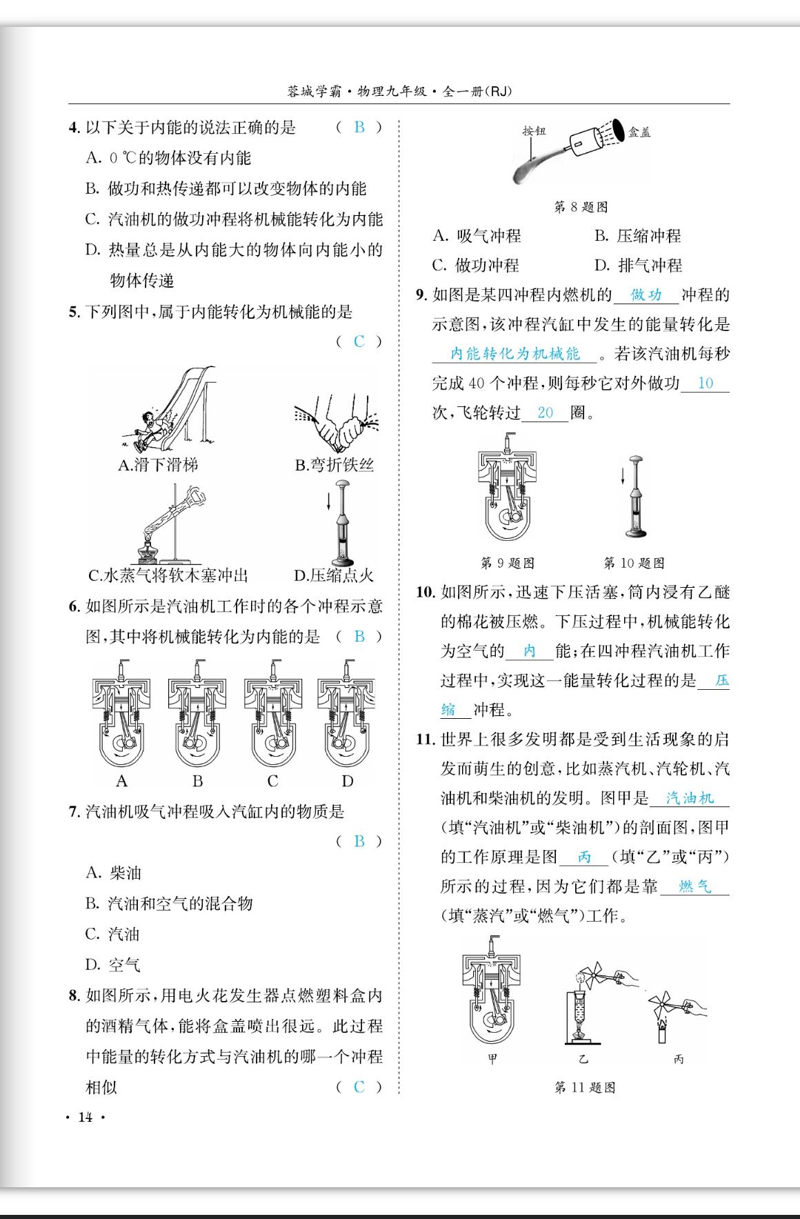 注:目前有些书本章节名称可能整理的还不是很完善,但都是按照顺序排列的,请同学们按照顺序仔细查找。练习册 2023年蓉城学霸九年级物理全一册人教版 答案主要是用来给同学们做完题方便对答案用的,请勿直接抄袭。