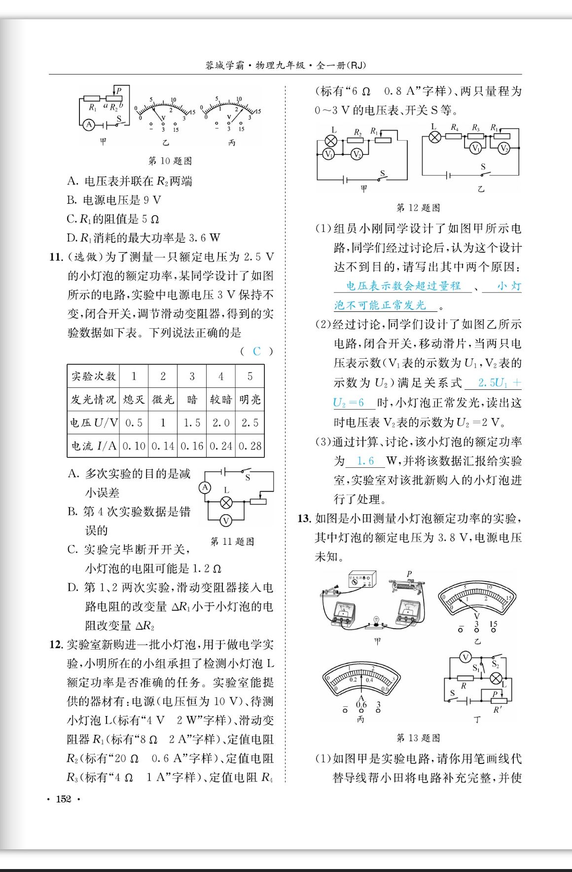 注:目前有些书本章节名称可能整理的还不是很完善,但都是按照顺序排列的,请同学们按照顺序仔细查找。练习册 2023年蓉城学霸九年级物理全一册人教版 答案主要是用来给同学们做完题方便对答案用的,请勿直接抄袭。