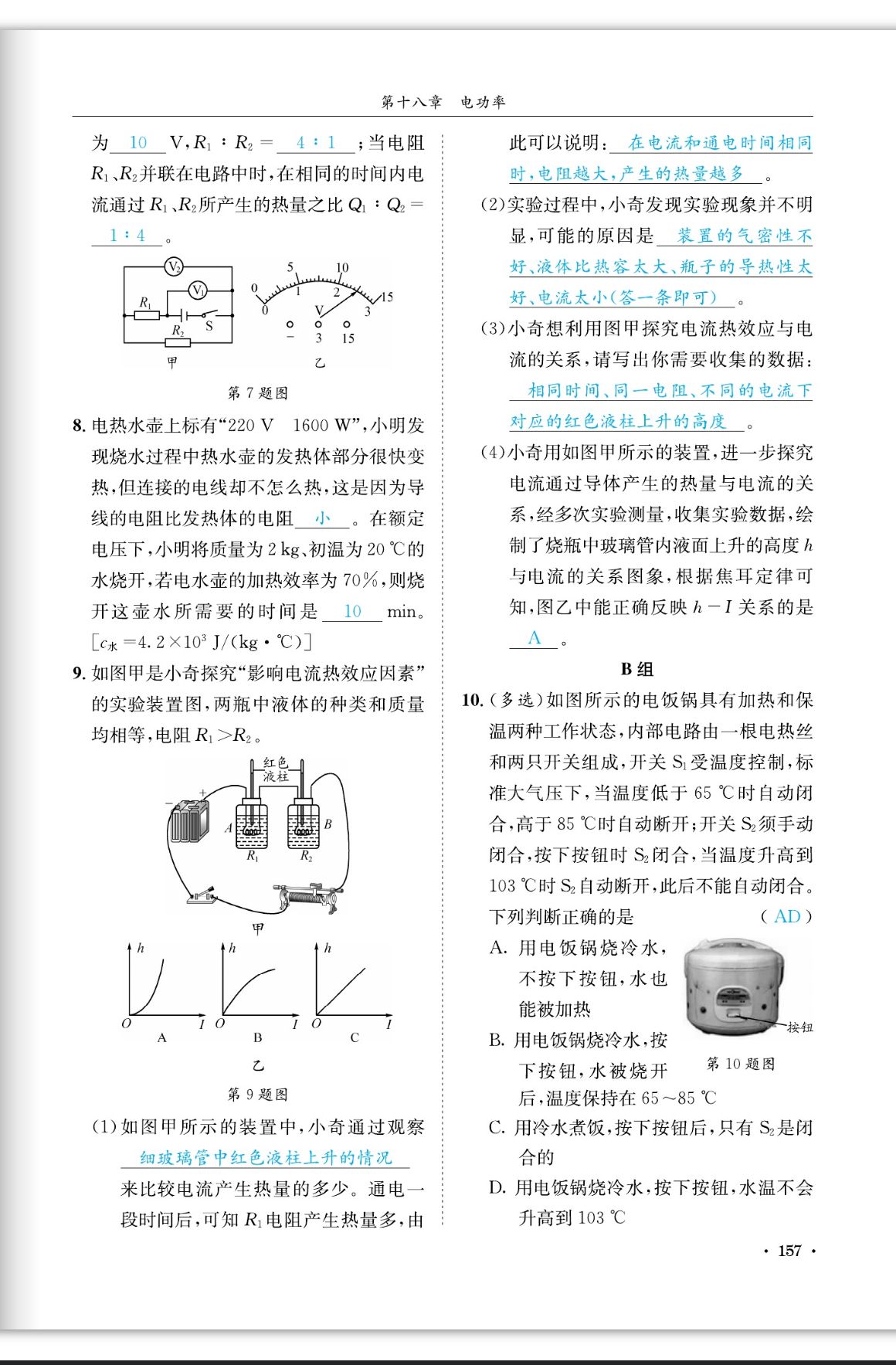 注:目前有些书本章节名称可能整理的还不是很完善,但都是按照顺序排列的,请同学们按照顺序仔细查找。练习册 2023年蓉城学霸九年级物理全一册人教版 答案主要是用来给同学们做完题方便对答案用的,请勿直接抄袭。