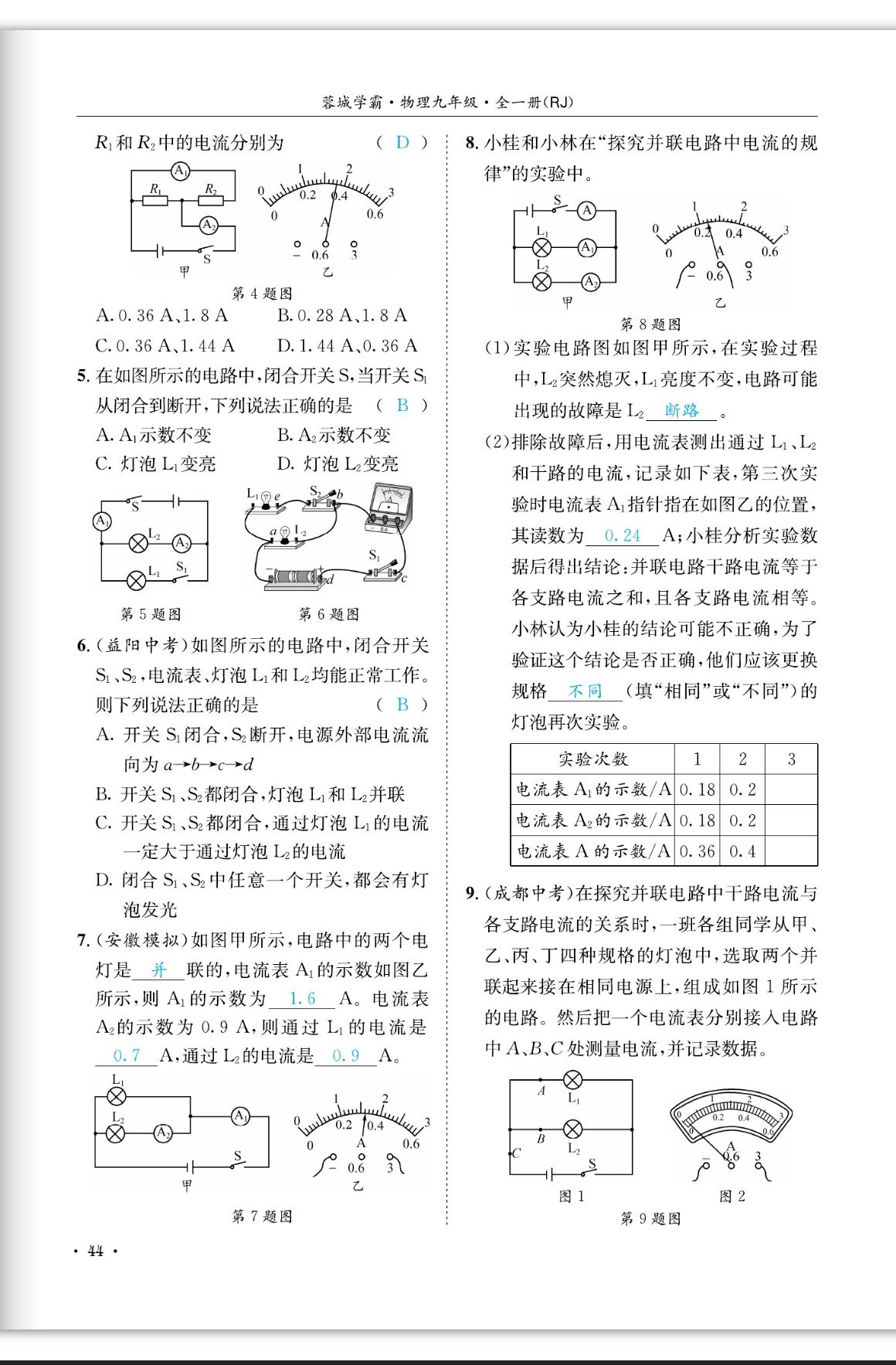 注:目前有些书本章节名称可能整理的还不是很完善,但都是按照顺序排列的,请同学们按照顺序仔细查找。练习册 2023年蓉城学霸九年级物理全一册人教版 答案主要是用来给同学们做完题方便对答案用的,请勿直接抄袭。