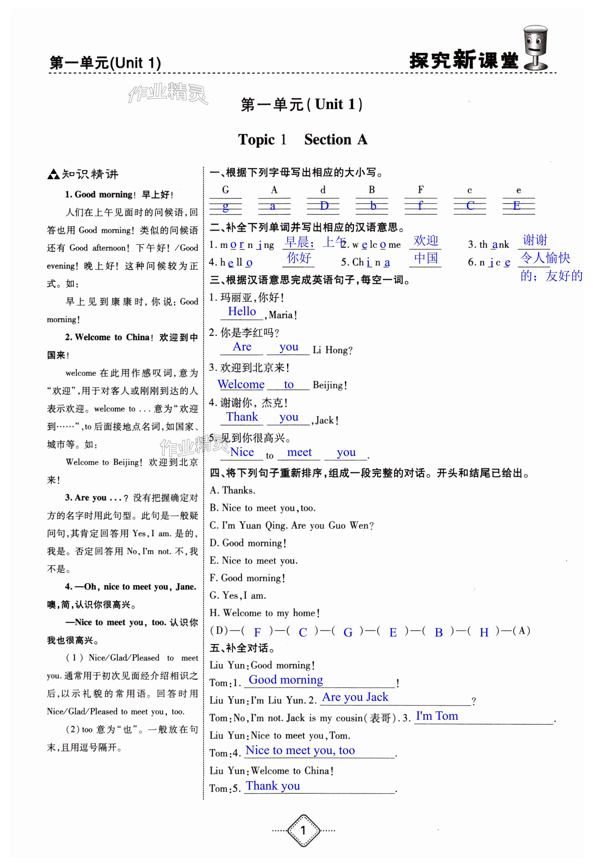 注:目前有些书本章节名称可能整理的还不是很完善,但都是按照顺序排列的,请同学们按照顺序仔细查找。练习册 2023年探究新课堂七年级英语上册仁爱版河南专版 答案主要是用来给同学们做完题方便对答案用的,请勿直接抄袭。
