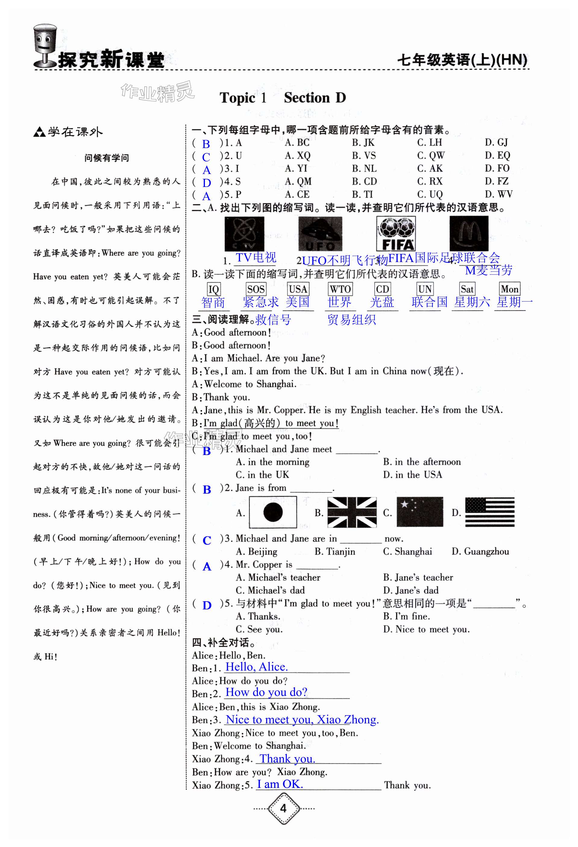 注:目前有些书本章节名称可能整理的还不是很完善,但都是按照顺序排列的,请同学们按照顺序仔细查找。练习册 2023年探究新课堂七年级英语上册仁爱版河南专版 答案主要是用来给同学们做完题方便对答案用的,请勿直接抄袭。