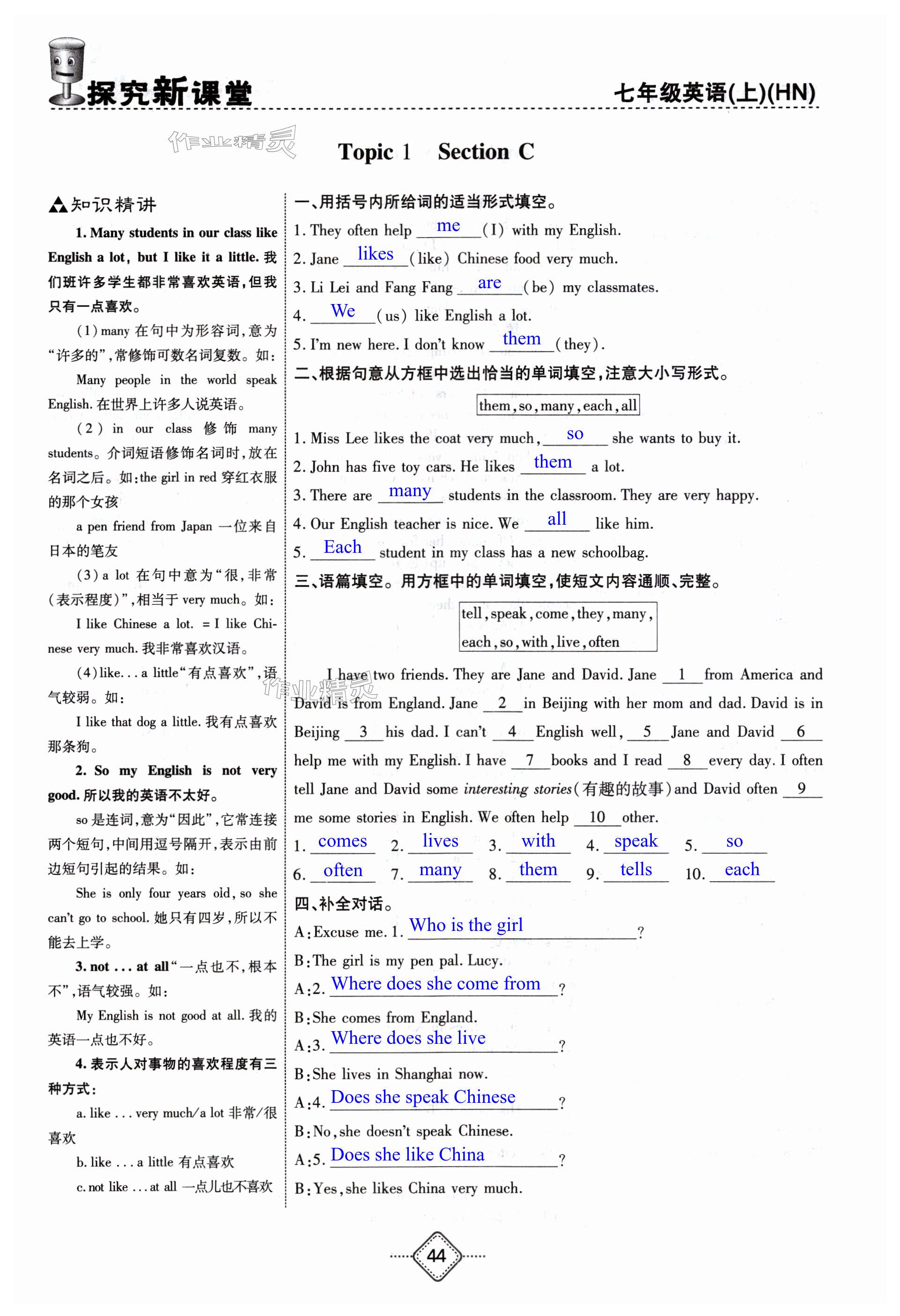 注:目前有些书本章节名称可能整理的还不是很完善,但都是按照顺序排列的,请同学们按照顺序仔细查找。练习册 2023年探究新课堂七年级英语上册仁爱版河南专版 答案主要是用来给同学们做完题方便对答案用的,请勿直接抄袭。