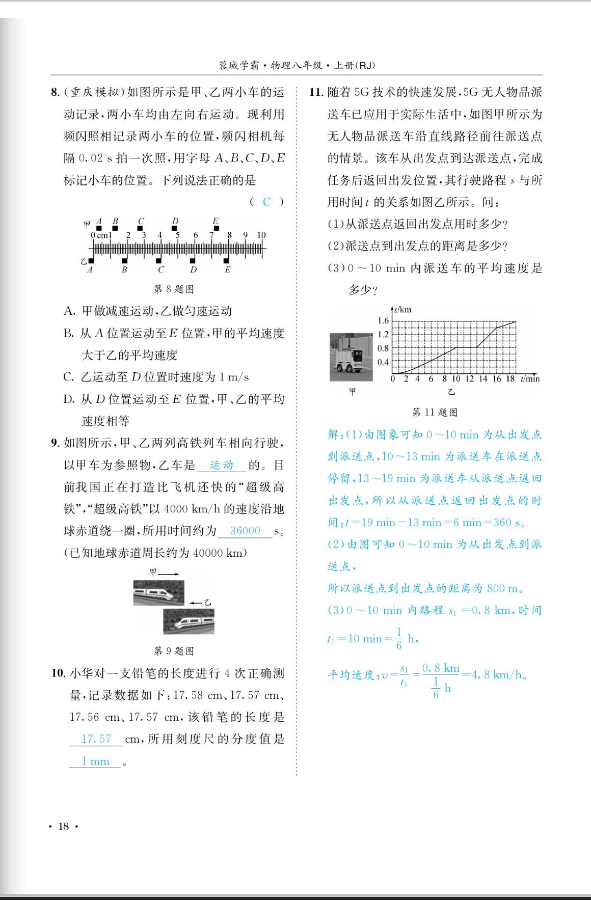 注:目前有些书本章节名称可能整理的还不是很完善,但都是按照顺序排列的,请同学们按照顺序仔细查找。练习册 2023年蓉城学霸八年级物理上册人教版 答案主要是用来给同学们做完题方便对答案用的,请勿直接抄袭。