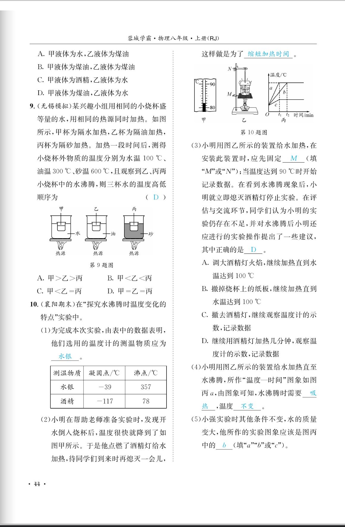 注:目前有些书本章节名称可能整理的还不是很完善,但都是按照顺序排列的,请同学们按照顺序仔细查找。练习册 2023年蓉城学霸八年级物理上册人教版 答案主要是用来给同学们做完题方便对答案用的,请勿直接抄袭。