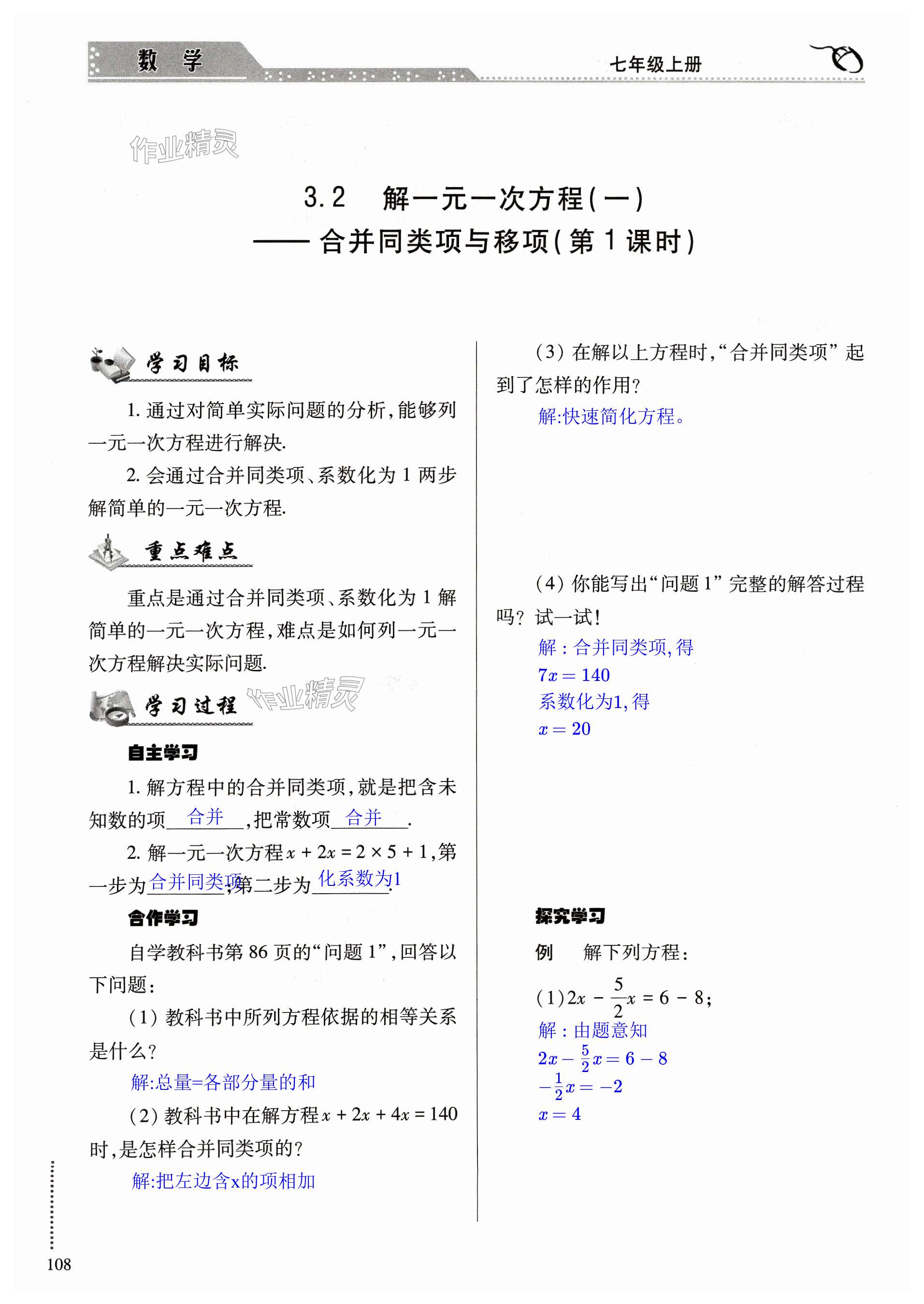 注:目前有些书本章节名称可能整理的还不是很完善,但都是按照顺序排列的,请同学们按照顺序仔细查找。练习册 2023年智慧学习导学练七年级数学上册人教版 答案主要是用来给同学们做完题方便对答案用的,请勿直接抄袭。