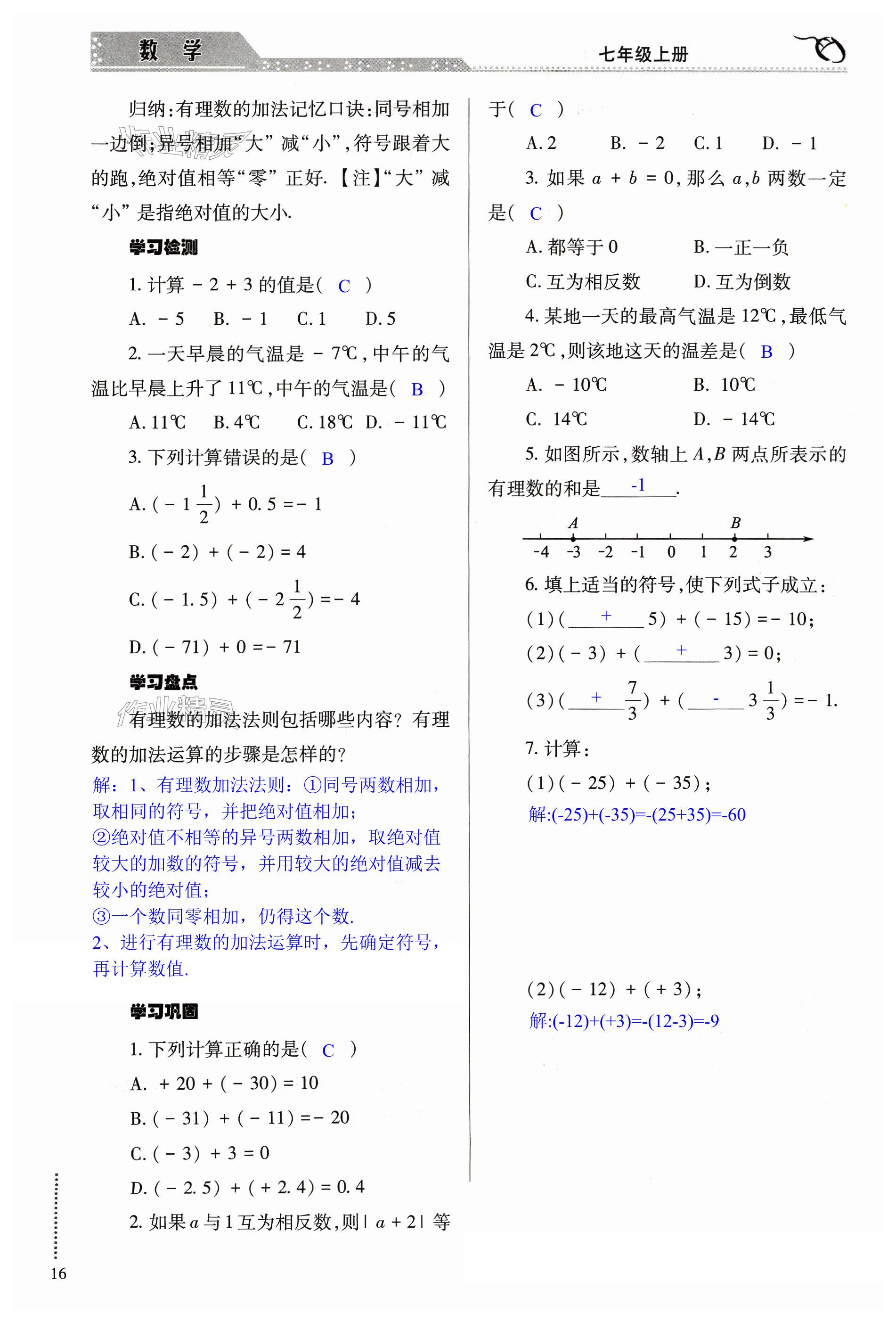 注:目前有些书本章节名称可能整理的还不是很完善,但都是按照顺序排列的,请同学们按照顺序仔细查找。练习册 2023年智慧学习导学练七年级数学上册人教版 答案主要是用来给同学们做完题方便对答案用的,请勿直接抄袭。
