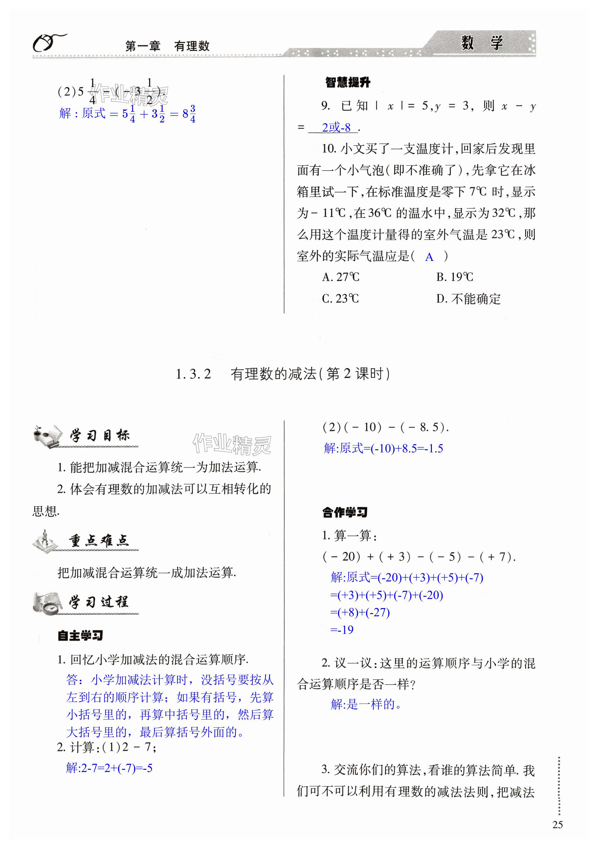 注:目前有些书本章节名称可能整理的还不是很完善,但都是按照顺序排列的,请同学们按照顺序仔细查找。练习册 2023年智慧学习导学练七年级数学上册人教版 答案主要是用来给同学们做完题方便对答案用的,请勿直接抄袭。