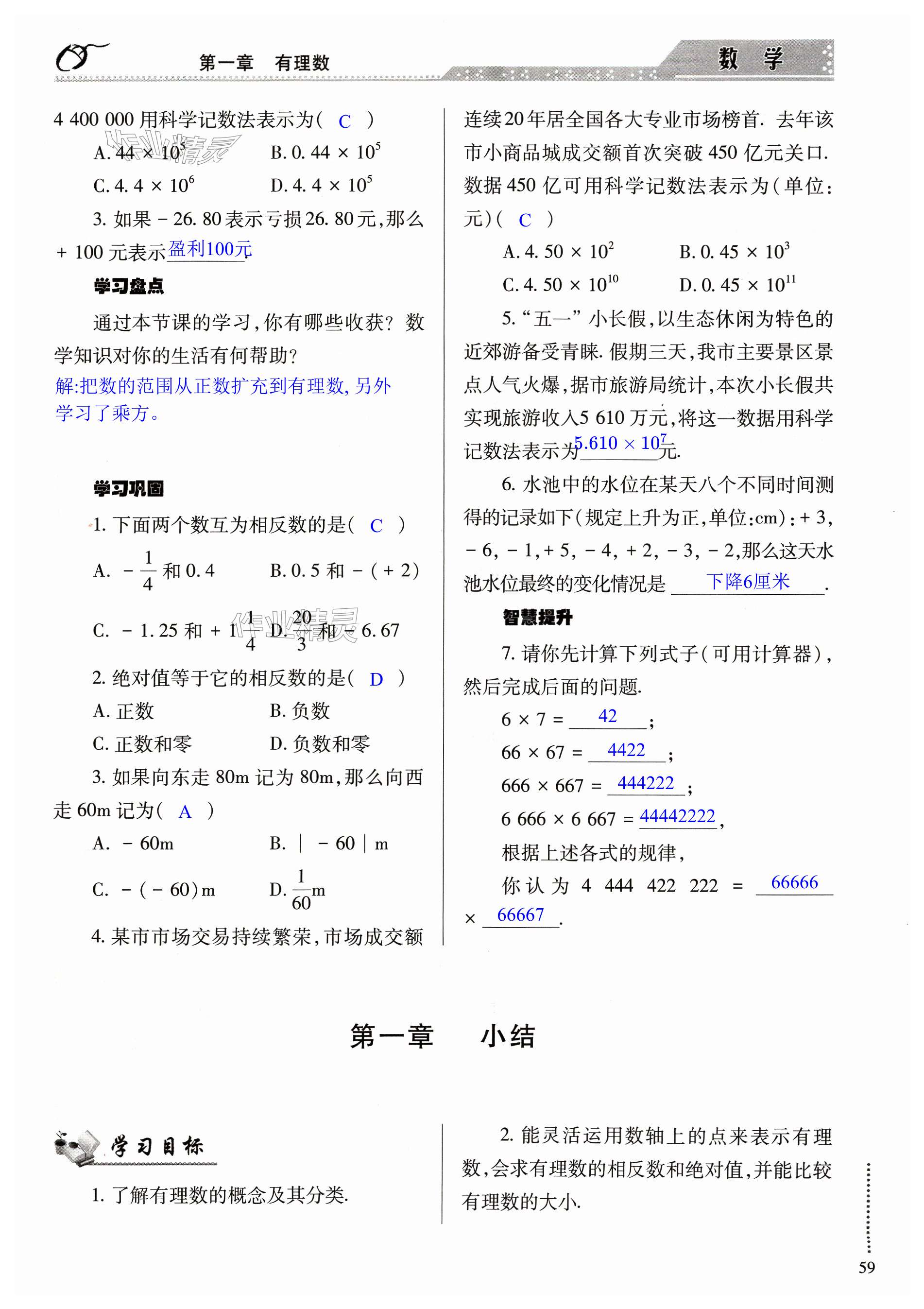 注:目前有些书本章节名称可能整理的还不是很完善,但都是按照顺序排列的,请同学们按照顺序仔细查找。练习册 2023年智慧学习导学练七年级数学上册人教版 答案主要是用来给同学们做完题方便对答案用的,请勿直接抄袭。