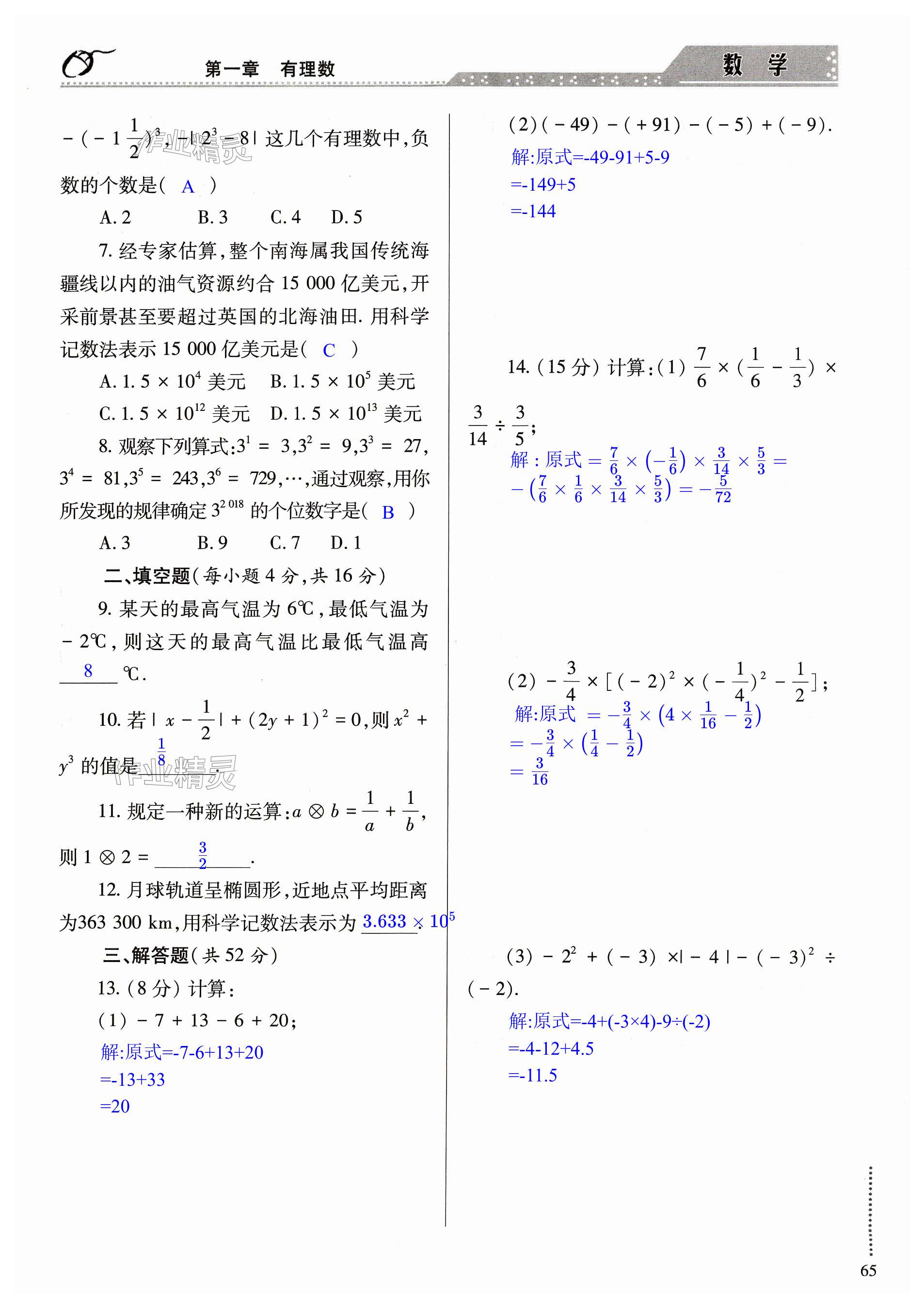 注:目前有些书本章节名称可能整理的还不是很完善,但都是按照顺序排列的,请同学们按照顺序仔细查找。练习册 2023年智慧学习导学练七年级数学上册人教版 答案主要是用来给同学们做完题方便对答案用的,请勿直接抄袭。