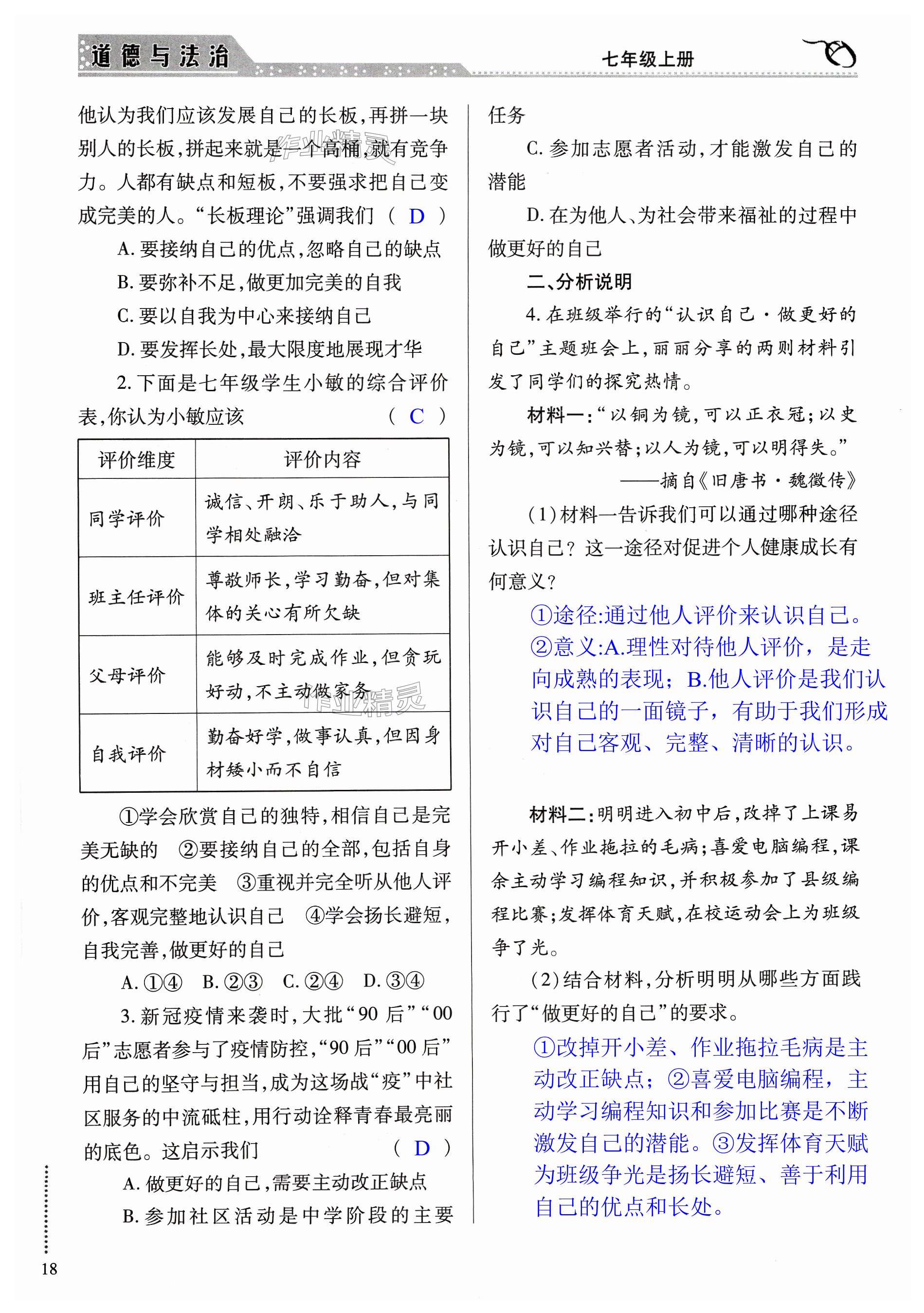 注:目前有些书本章节名称可能整理的还不是很完善,但都是按照顺序排列的,请同学们按照顺序仔细查找。练习册 2023年智慧学习导学练七年级道德与法治上册人教版 答案主要是用来给同学们做完题方便对答案用的,请勿直接抄袭。