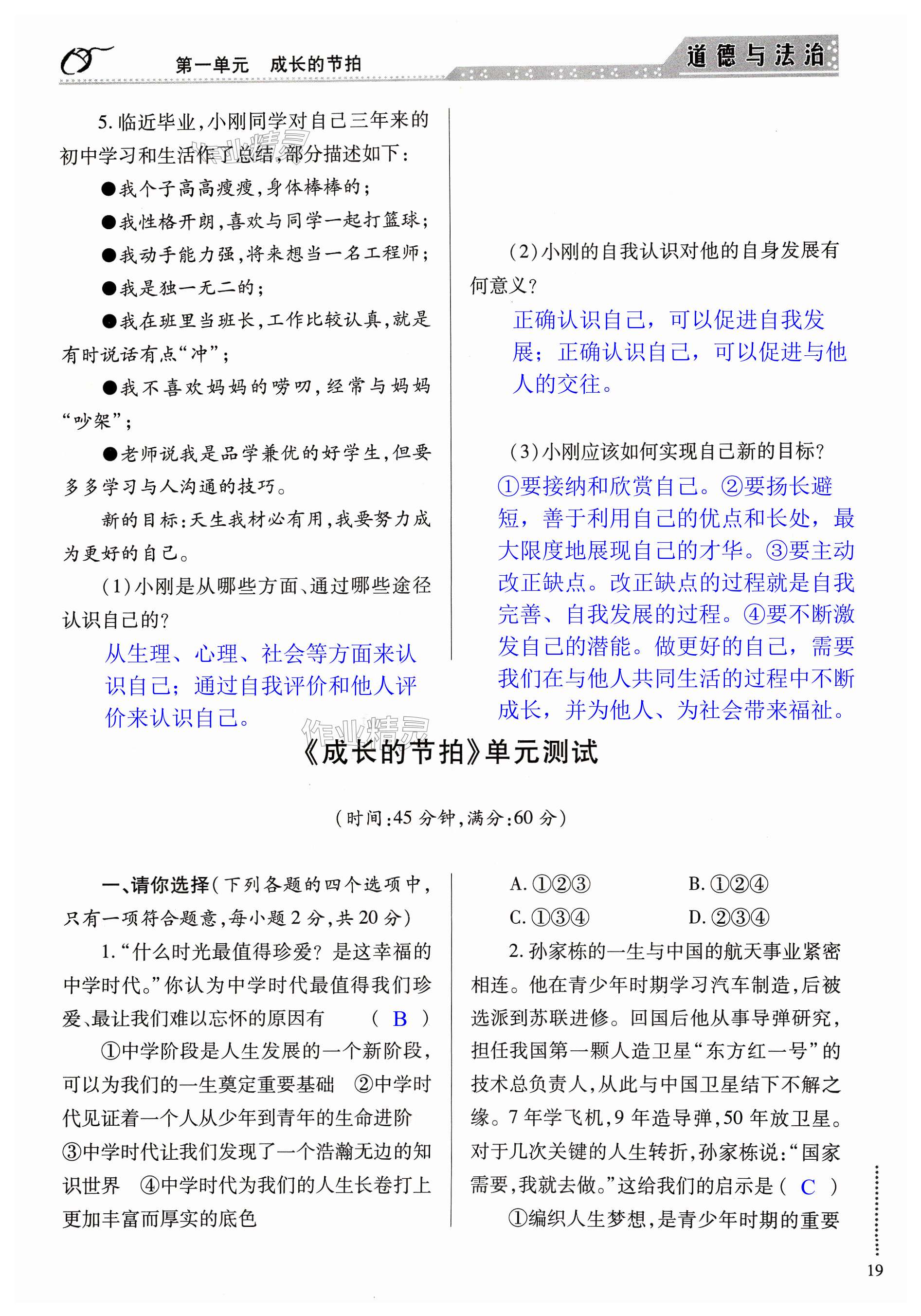 注:目前有些书本章节名称可能整理的还不是很完善,但都是按照顺序排列的,请同学们按照顺序仔细查找。练习册 2023年智慧学习导学练七年级道德与法治上册人教版 答案主要是用来给同学们做完题方便对答案用的,请勿直接抄袭。