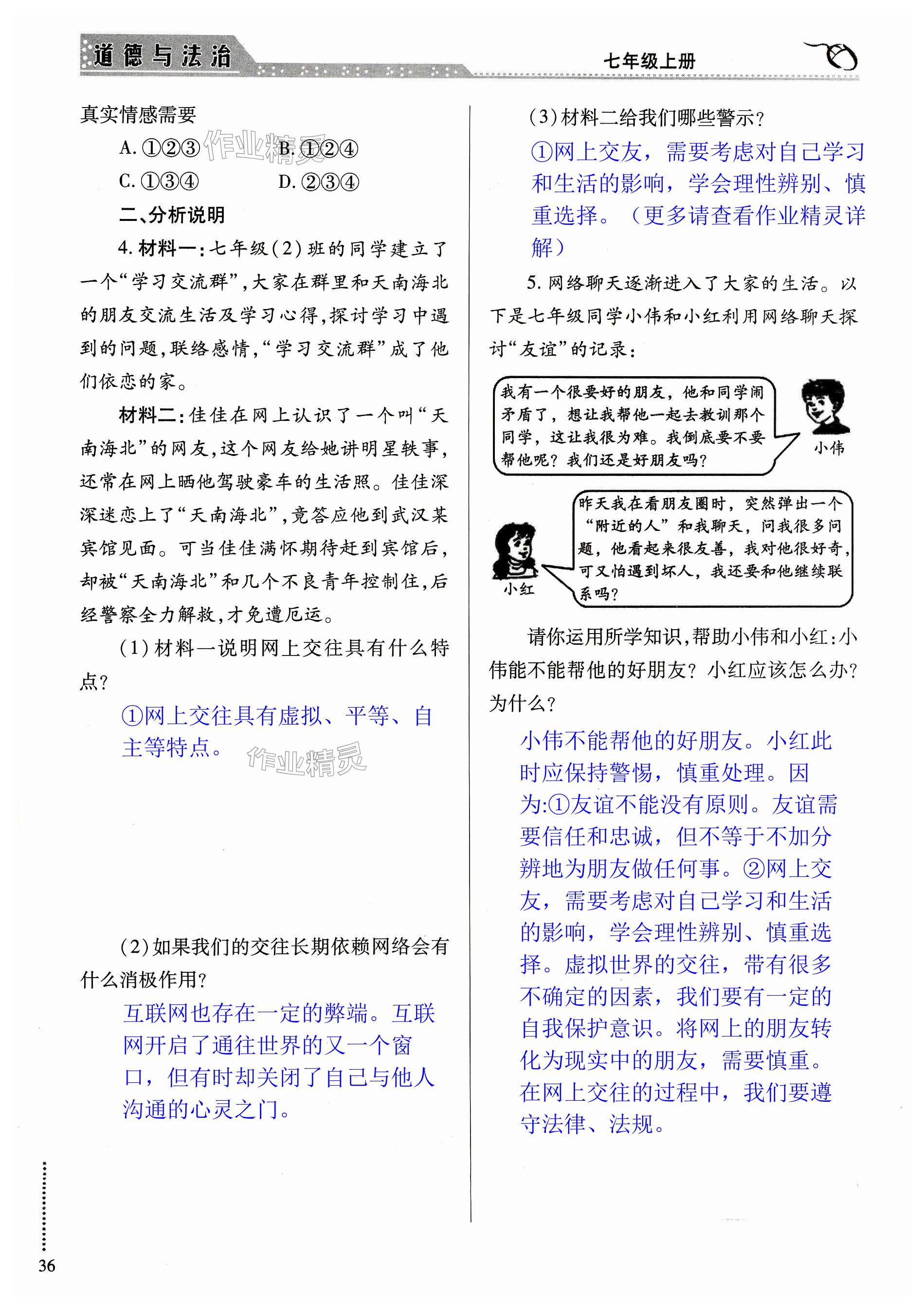 注:目前有些书本章节名称可能整理的还不是很完善,但都是按照顺序排列的,请同学们按照顺序仔细查找。练习册 2023年智慧学习导学练七年级道德与法治上册人教版 答案主要是用来给同学们做完题方便对答案用的,请勿直接抄袭。