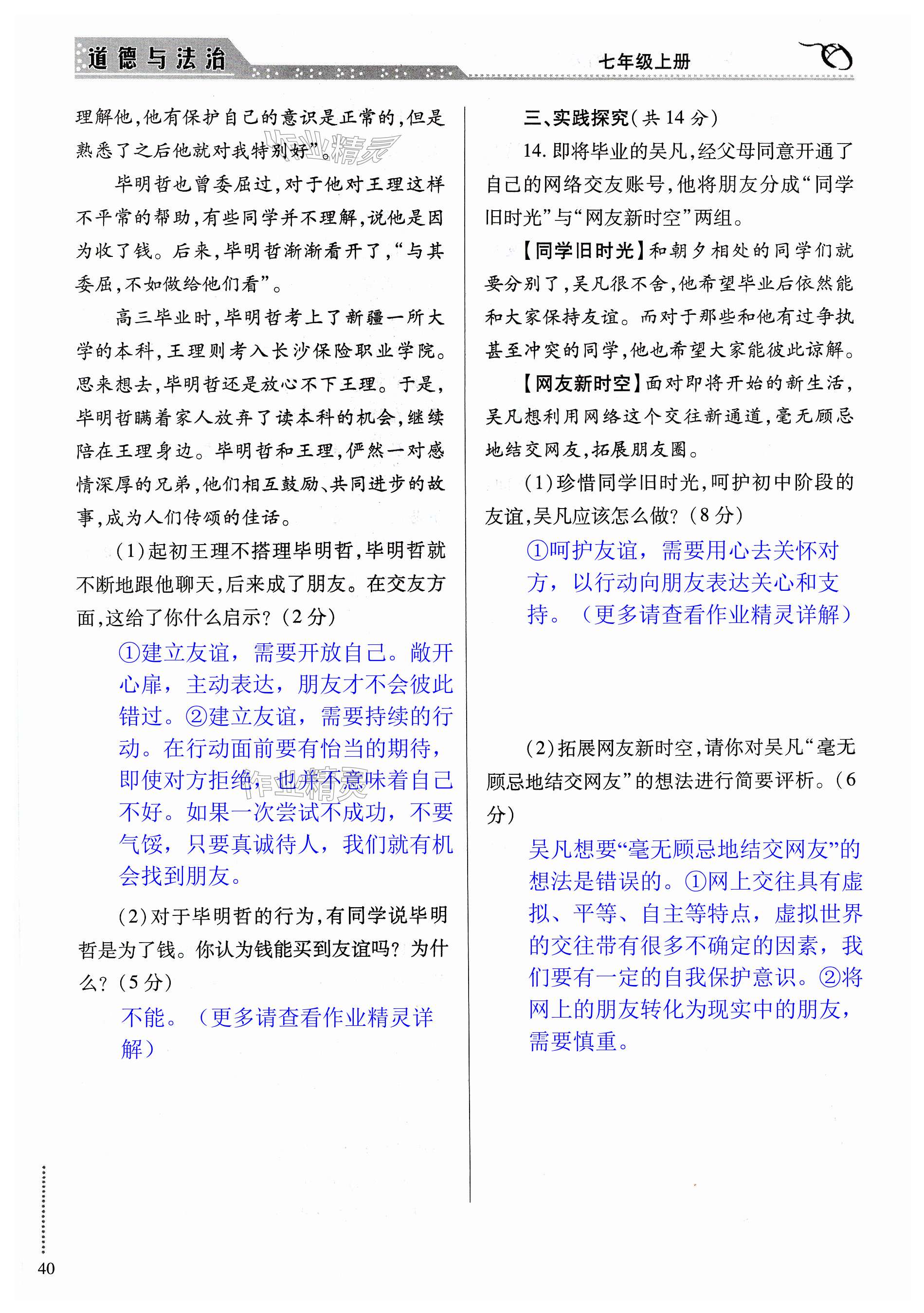 注:目前有些书本章节名称可能整理的还不是很完善,但都是按照顺序排列的,请同学们按照顺序仔细查找。练习册 2023年智慧学习导学练七年级道德与法治上册人教版 答案主要是用来给同学们做完题方便对答案用的,请勿直接抄袭。