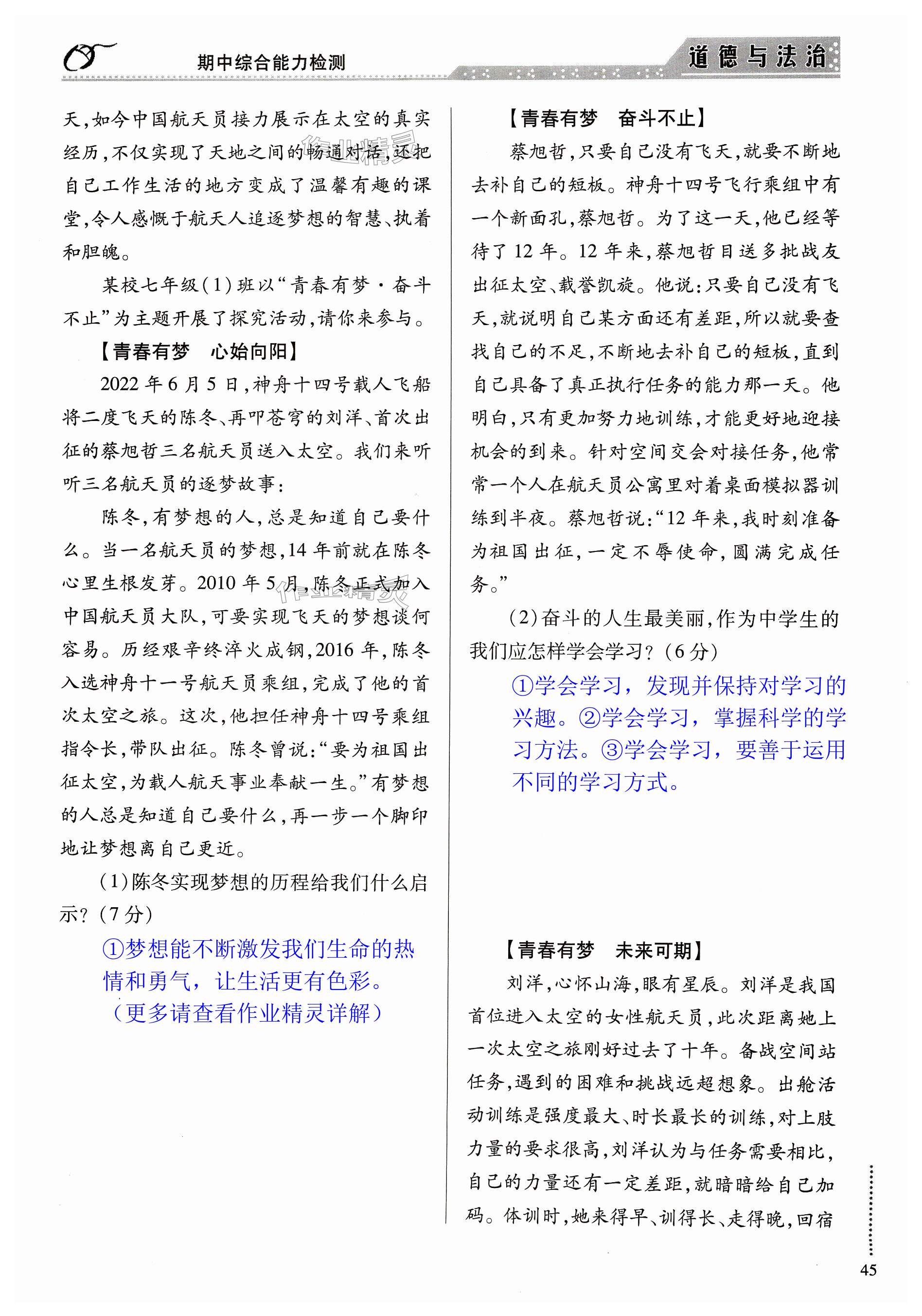 注:目前有些书本章节名称可能整理的还不是很完善,但都是按照顺序排列的,请同学们按照顺序仔细查找。练习册 2023年智慧学习导学练七年级道德与法治上册人教版 答案主要是用来给同学们做完题方便对答案用的,请勿直接抄袭。