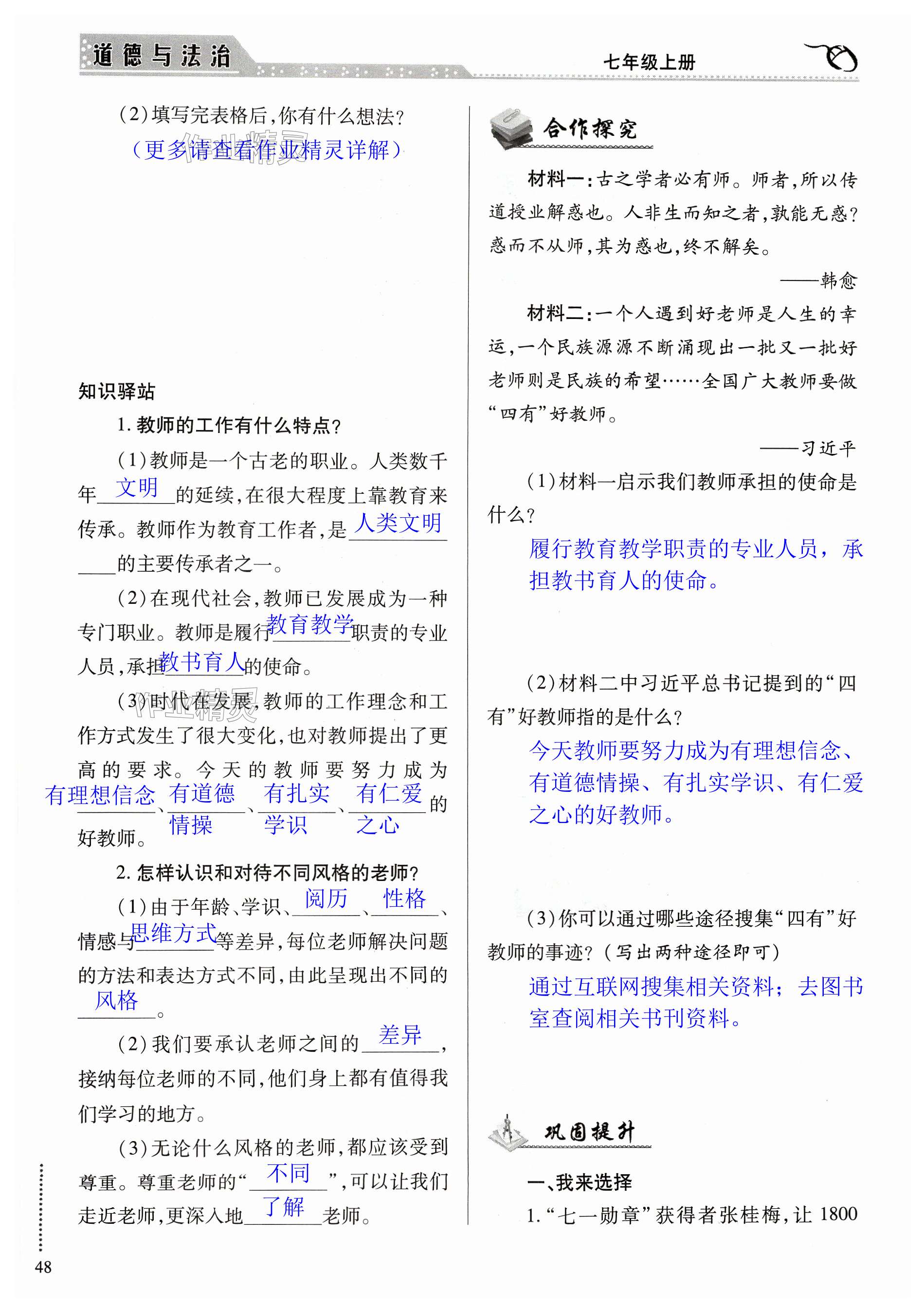 注:目前有些书本章节名称可能整理的还不是很完善,但都是按照顺序排列的,请同学们按照顺序仔细查找。练习册 2023年智慧学习导学练七年级道德与法治上册人教版 答案主要是用来给同学们做完题方便对答案用的,请勿直接抄袭。